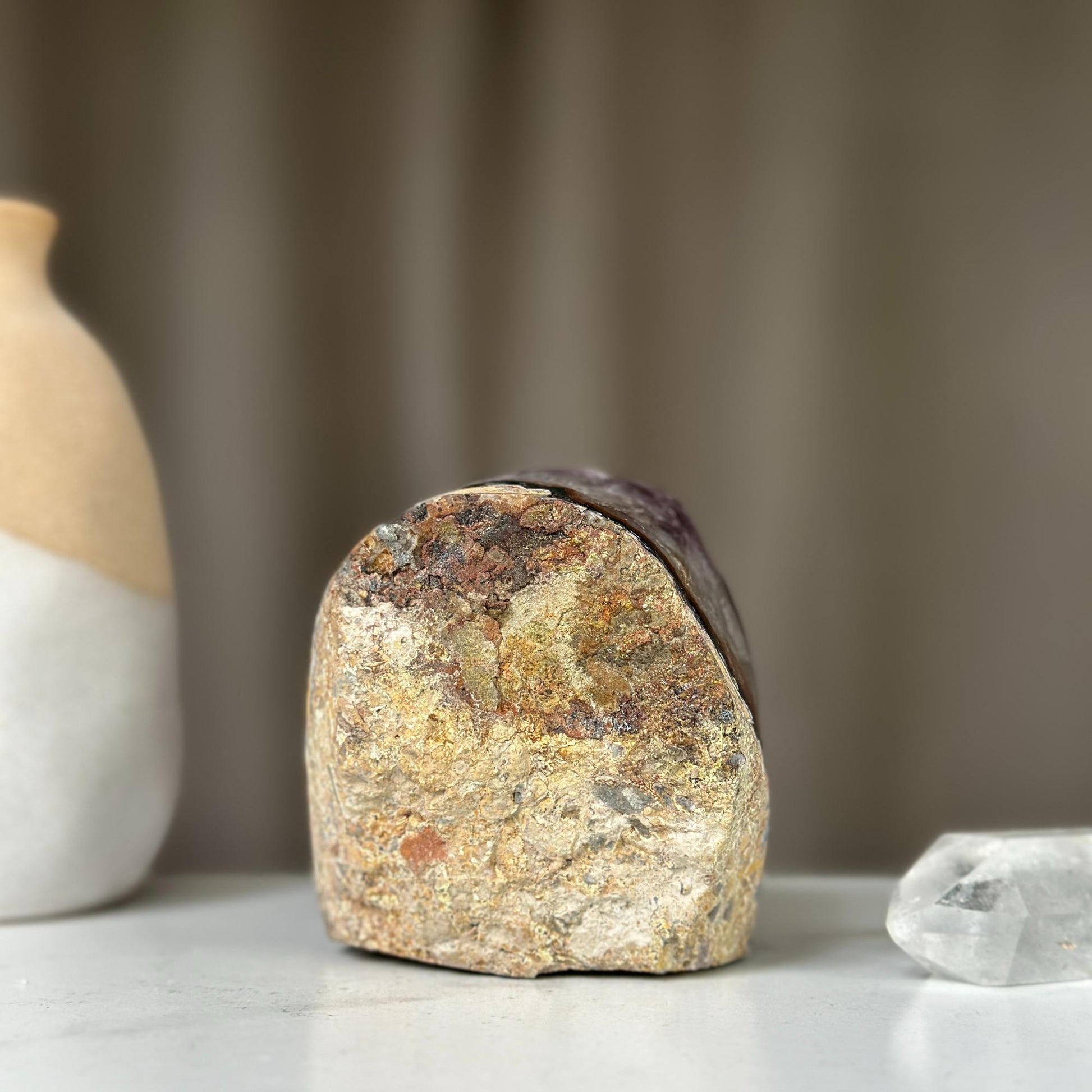 Its vibrant deep purple color is characteristic of the geodes extracted from URUGUAY, one of the few places in the world where you can find. It was extracted respecting the strict standards of open-pit mining in our country that ensure the safe work.