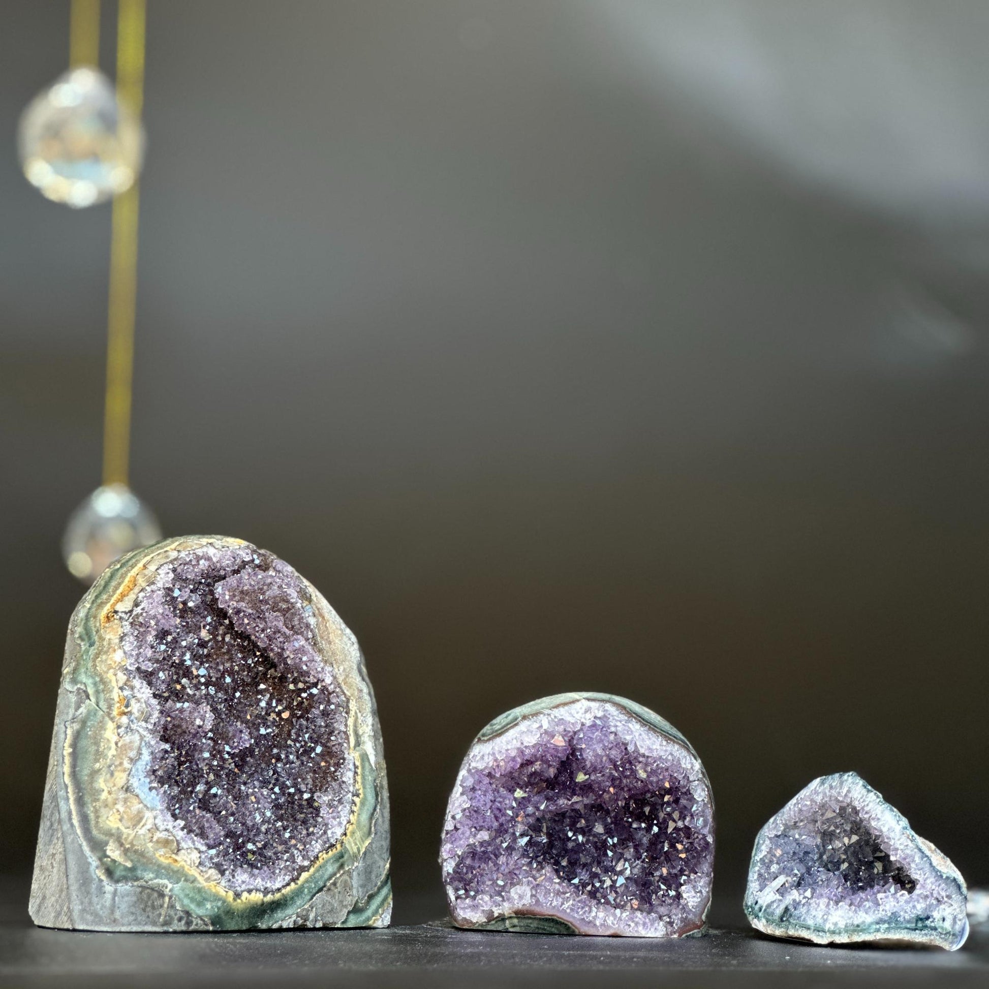 This set of mini amethysts crystals has the highest quality of the semi precious stones. It's the cutest amethyst geode set, perfect for home decoration.