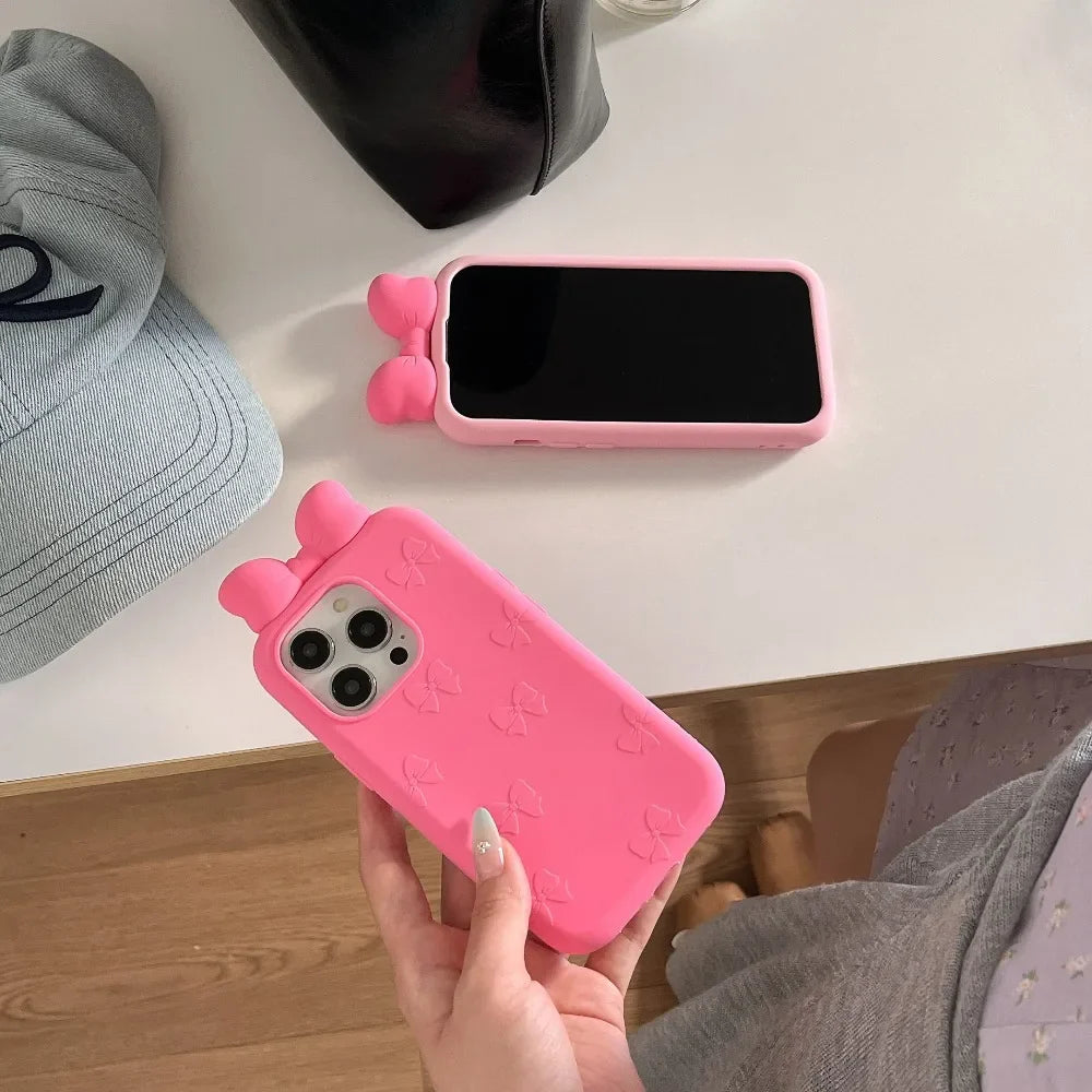 Elevate your iPhone with playful personality. This 3D silicone case features an adorable bowknot and cartoon tie design that transforms your phone into a fashion statement. The soft, flexible silicone material provides reliable shock absorption and a comfortable grip, while the raised edges protect your screen and camera from daily bumps and drops. Perfect for anyone who loves quirky, eye-catching accessories that don't compromise on protection. Make your device stand out from the crowd with this charming, durable case.
