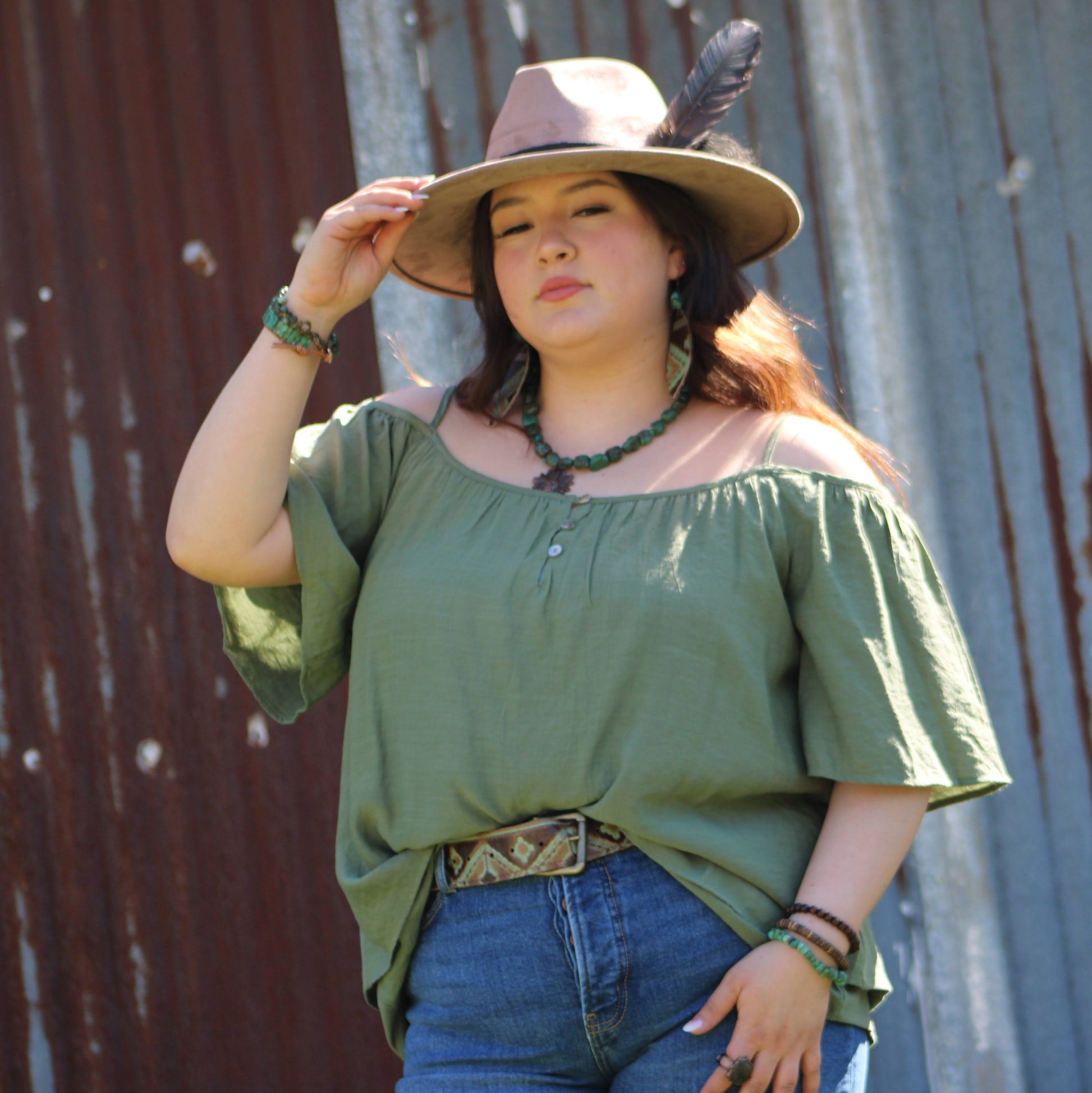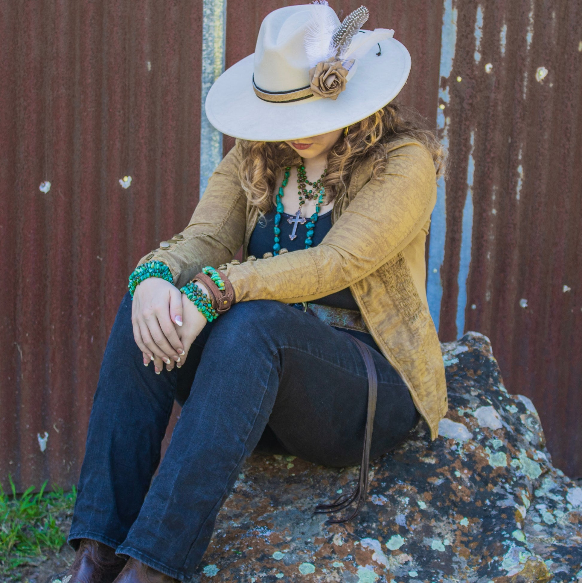 Introducing the African Turquoise Triple Strand Bracelet. This piece of jewelry features a sleek boho style, with a layered western look. Crafted with three strands of African Turquoise, this piece is a timeless addition to any jewelry wardrobe.