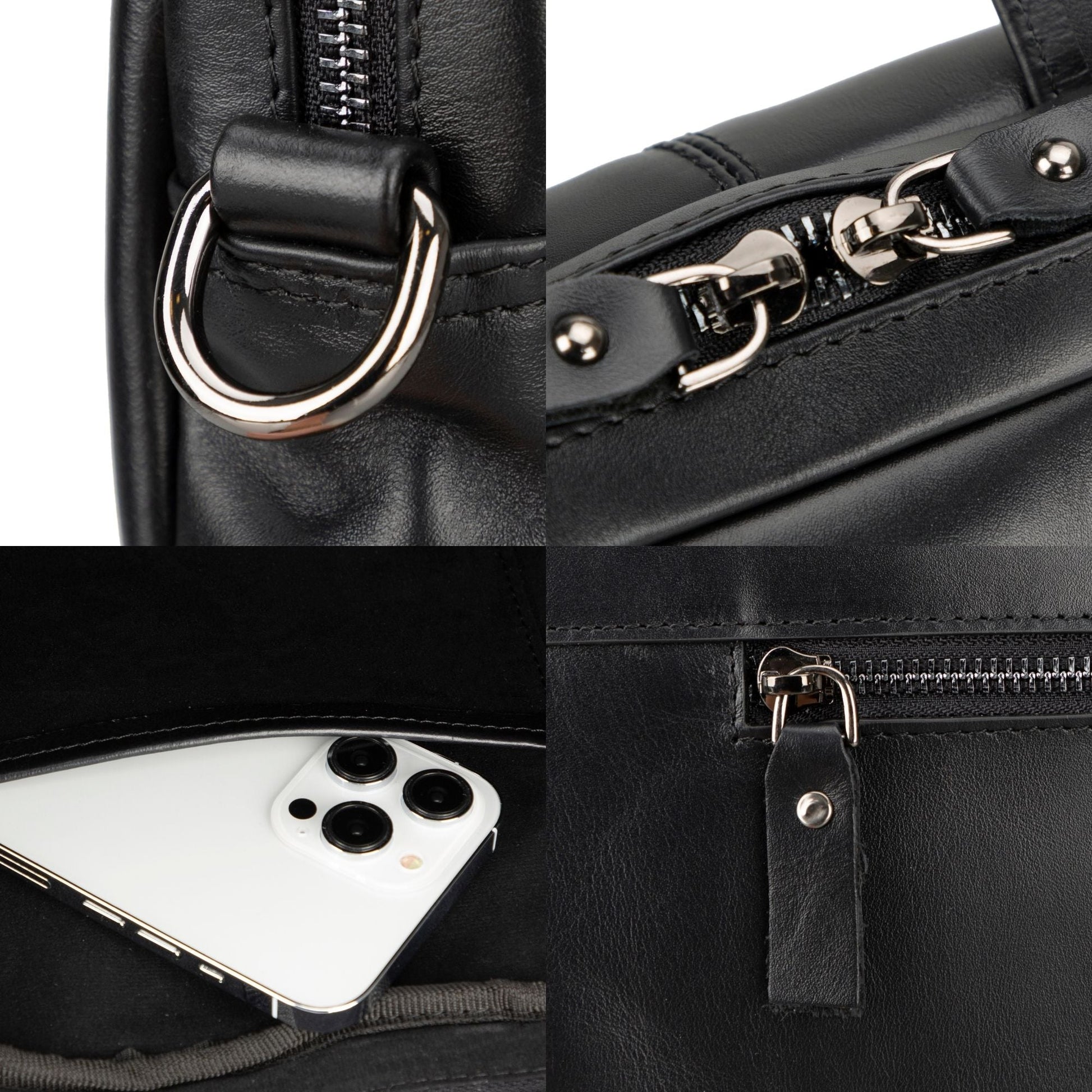 The Afton Genuine Leather Bag is available in two sizes to accommodate different devices.