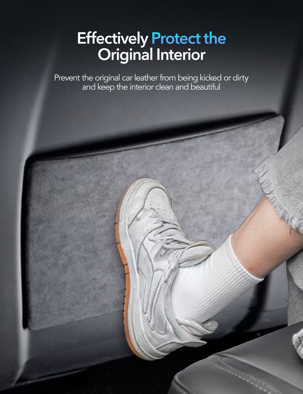 [Effective Anti-Kick Protection] Engineered with an anti-kick feature, the cushion provides effective protection for your Tesla's seat backrest. It acts as a barrier against accidental kicks, scuffs, and potential damage, preserving the pristine condition of your car's interior.