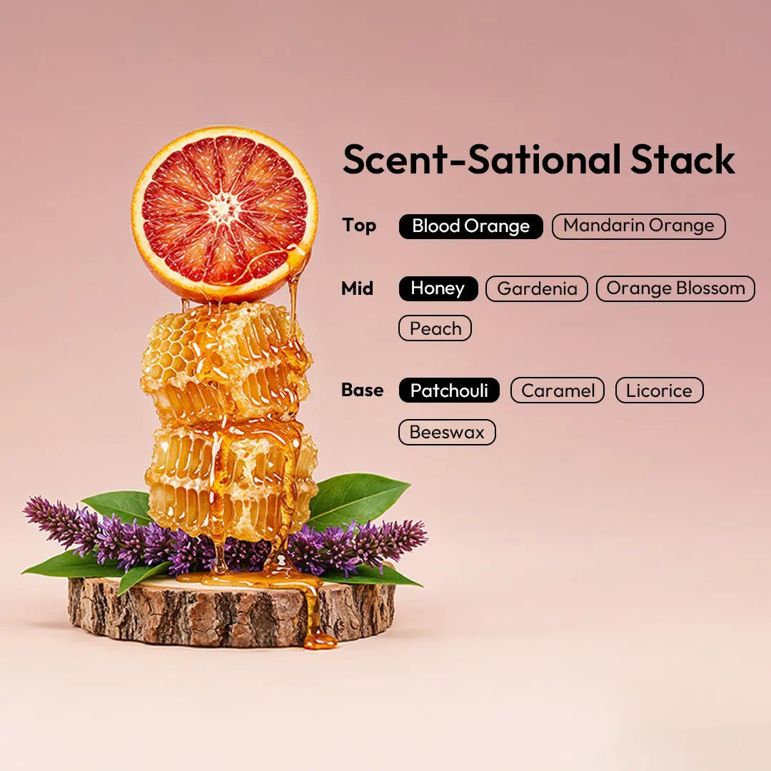 Around a fearless allure of gardenia and honey, wrapped in sunny orange blossom. An enchanting elixir of caramel and sweet vanilla, gently spiced in the warm embrace of amber. Resonance of luxury and opulence in earthy undertones of patchouli create a lingering aroma.