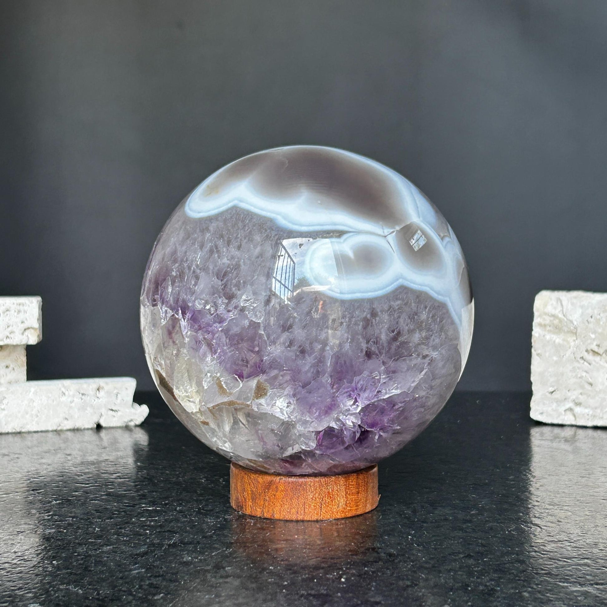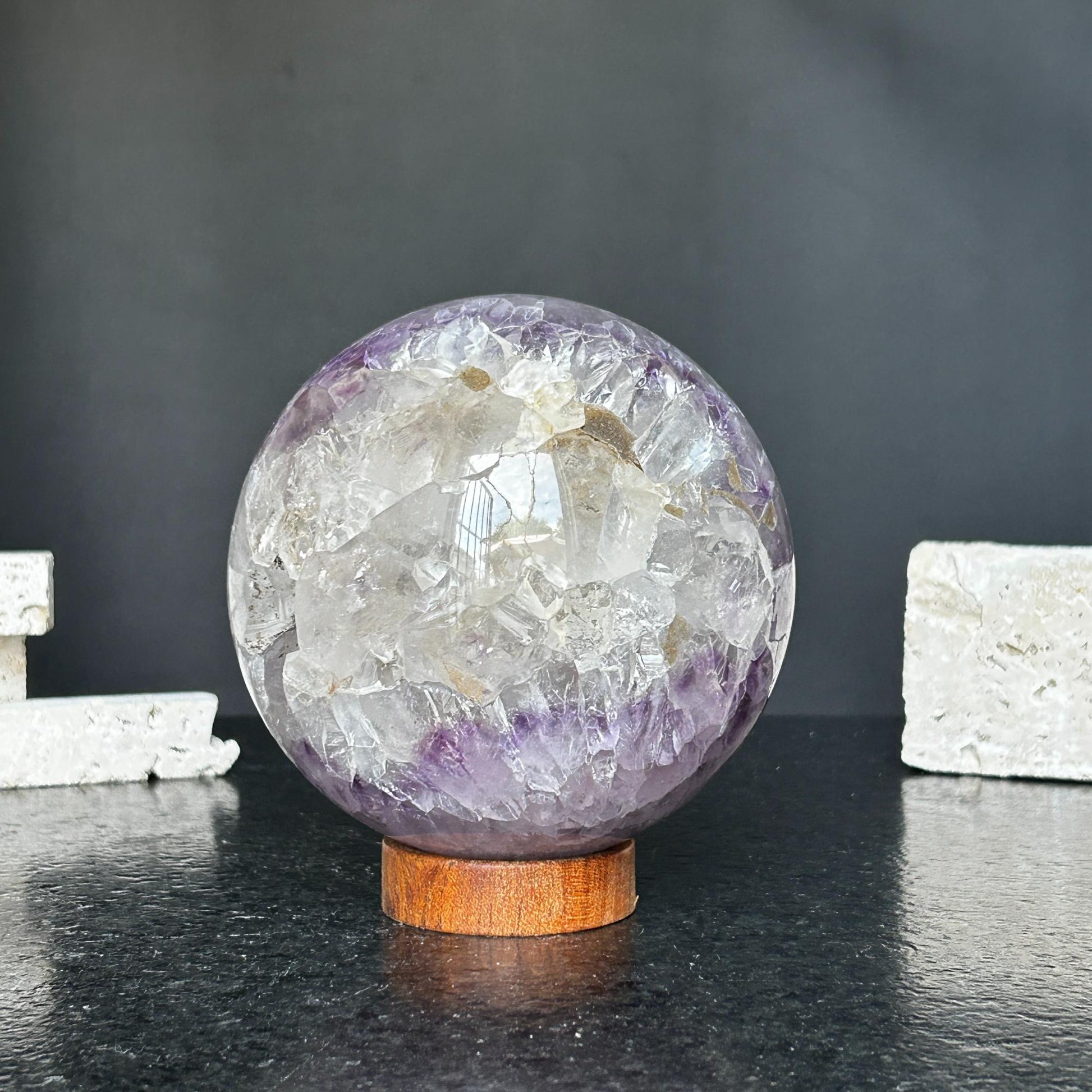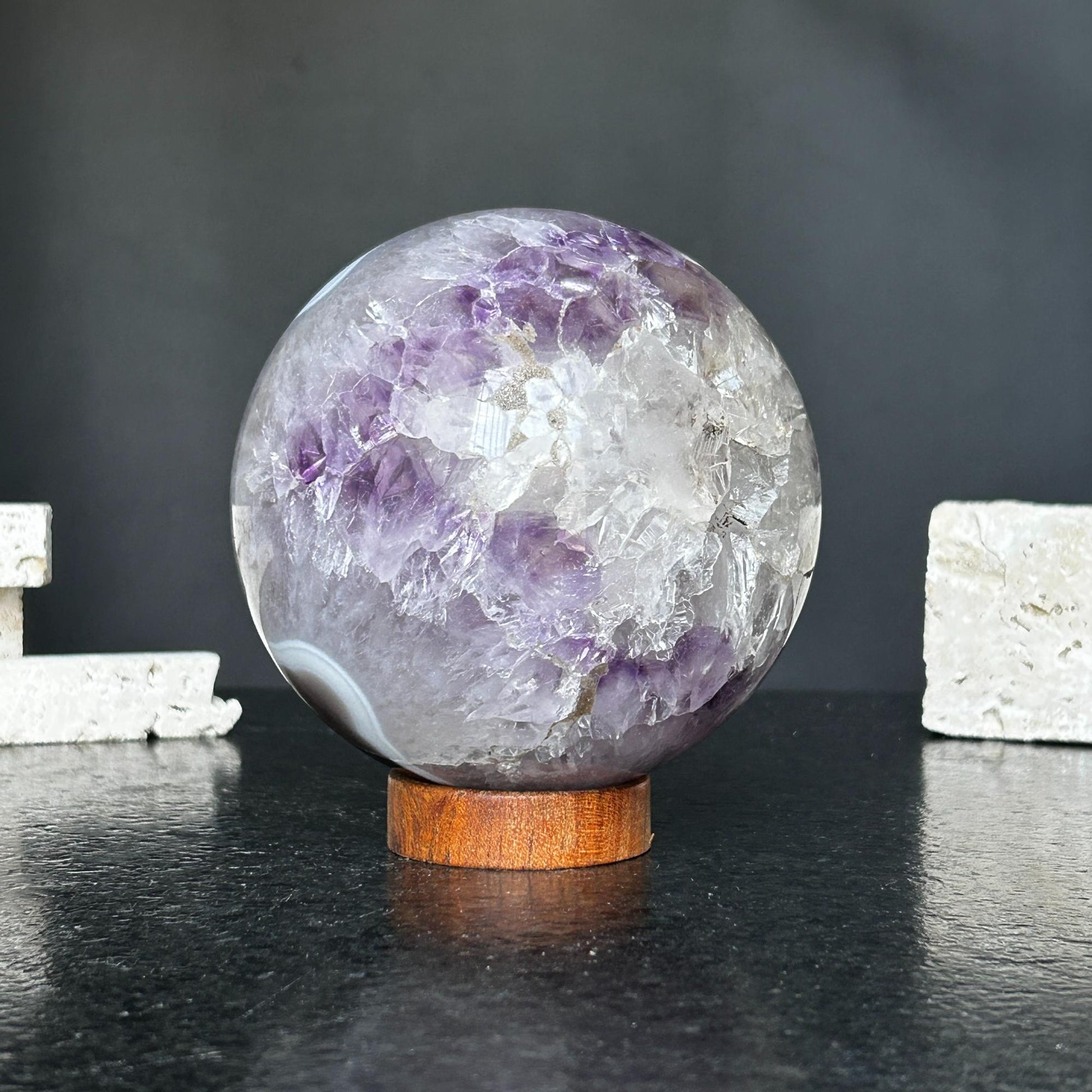 Add a touch of nature and luxury to your space with amethyst spheres—perfect for shelves, coffee tables, and entryways.