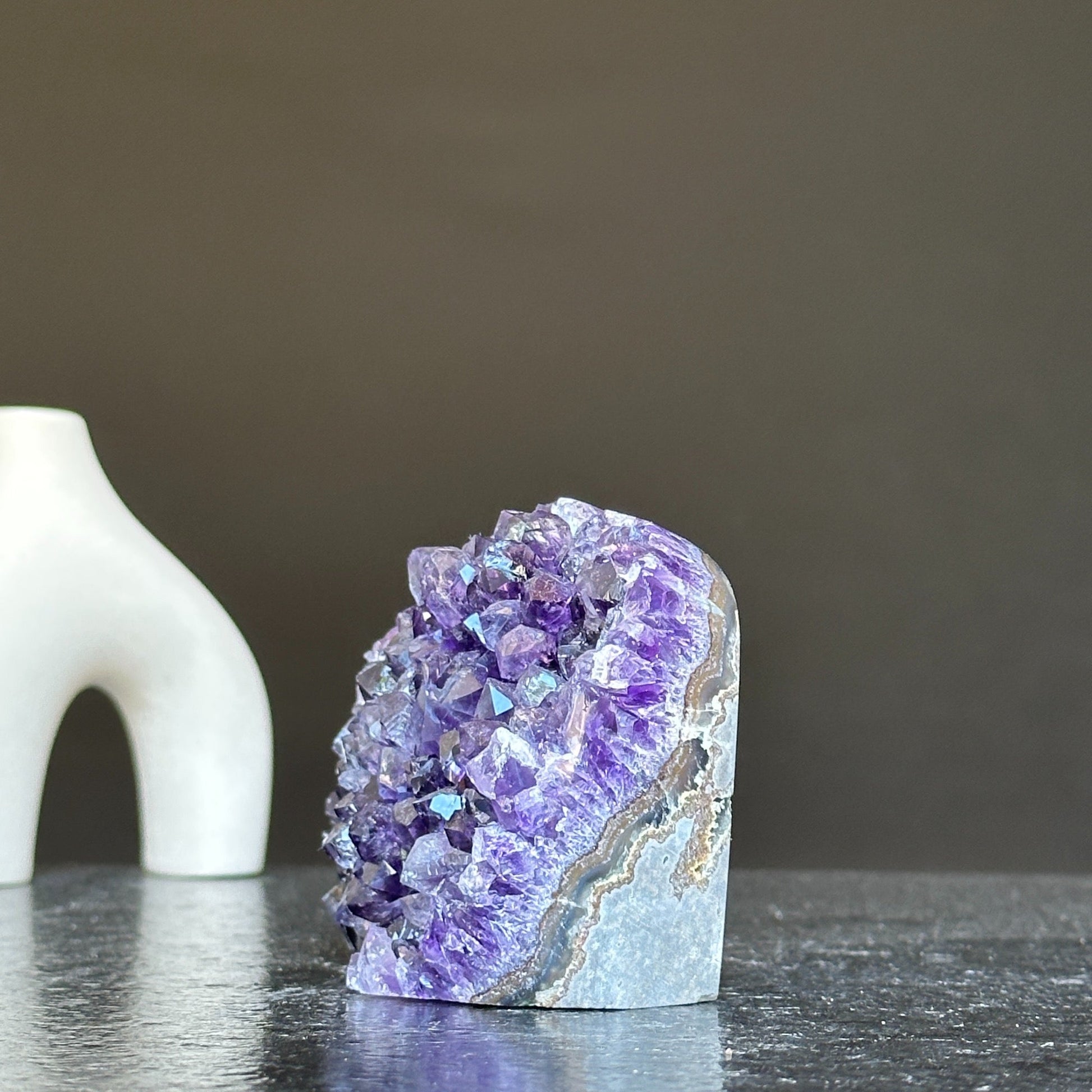 Bring home the best amethysts in the world—authentic, natural geodes from Uruguay, loved by collectors and healers alike.YOU WILL RECEIVE THE AMETHYST OF THE PICTURE! ✧ MEASURES:Width: 3 in x Height: 3.5 in. Weight 1.1 lb (524 gr)