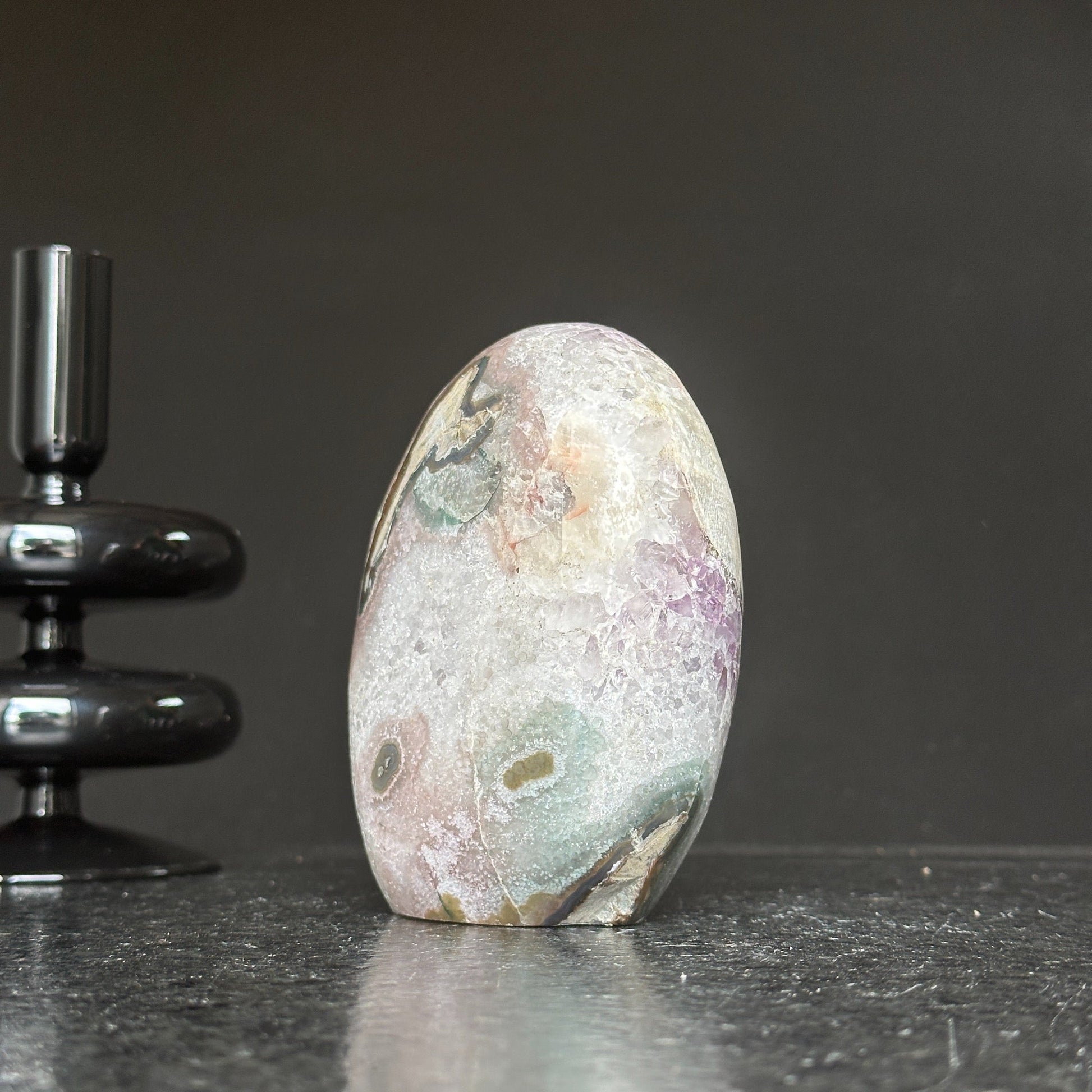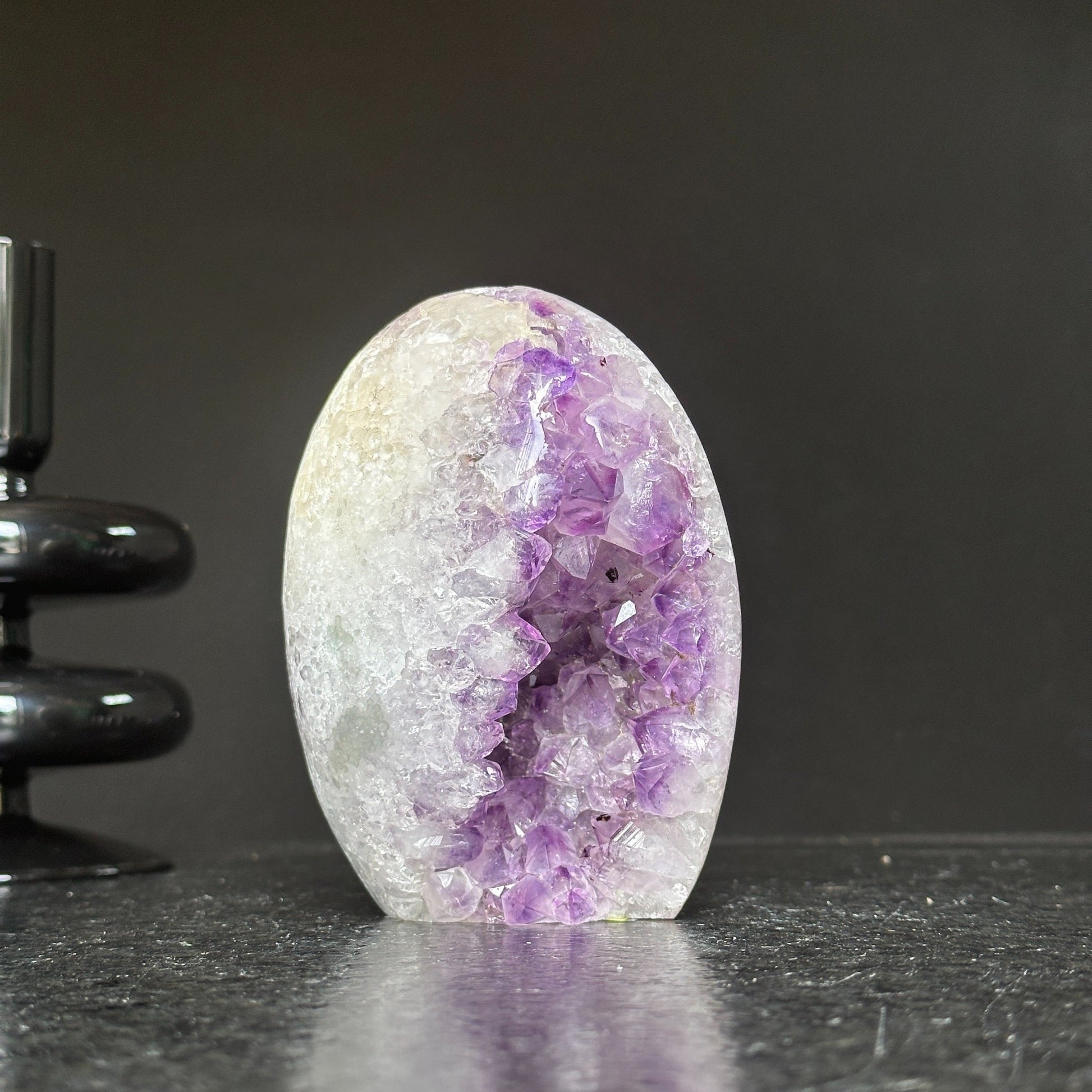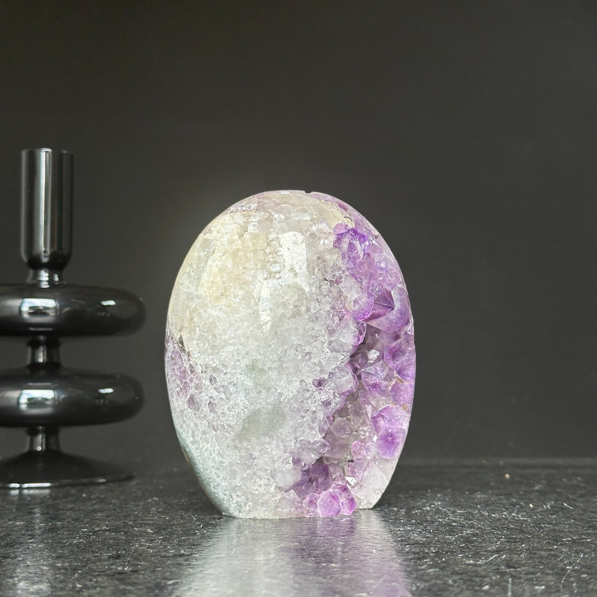 This amethyst stone egg is perfect for displaying in a reception table or desk.