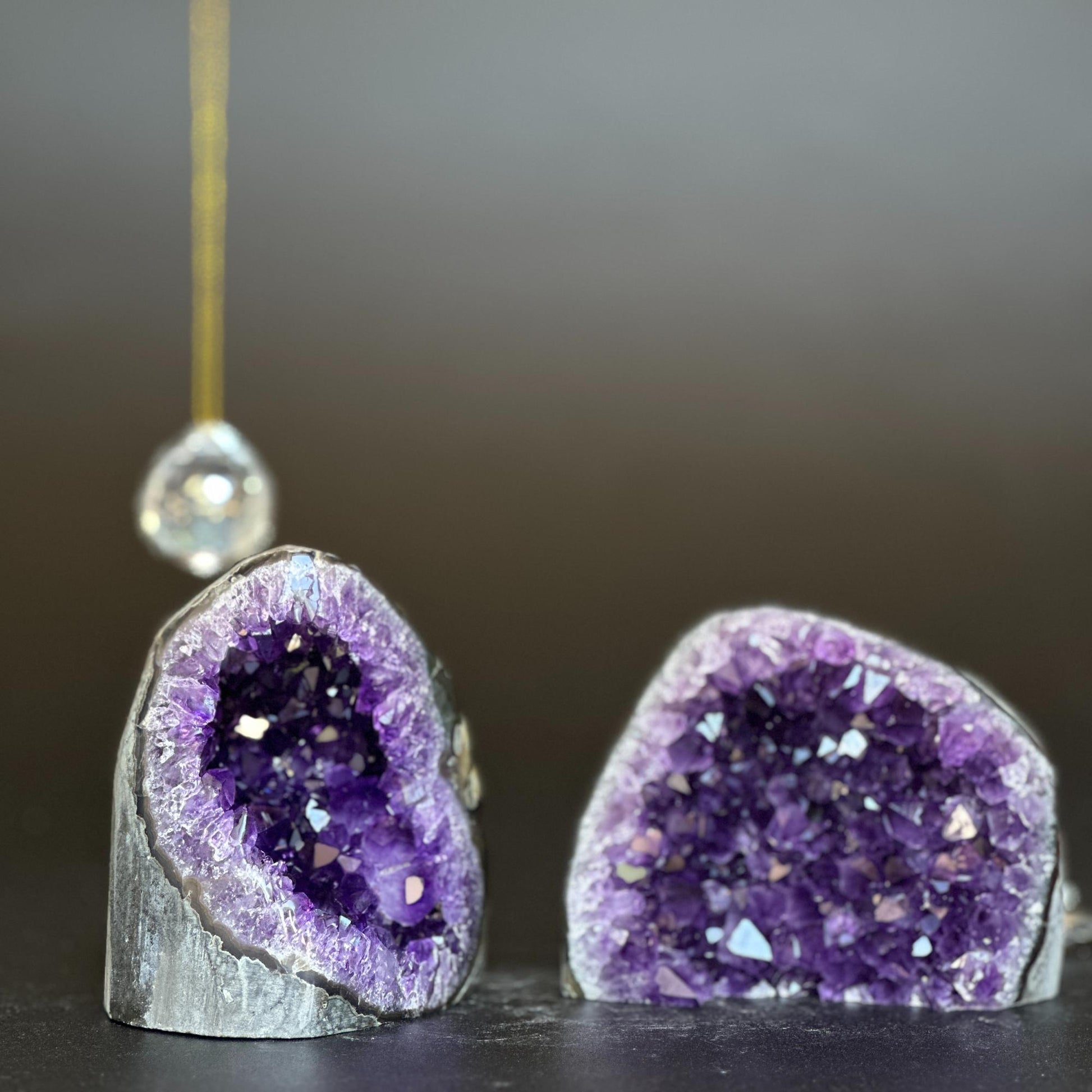 This set of 2 amethyst clusters has the highest quality of the semi precious stones.