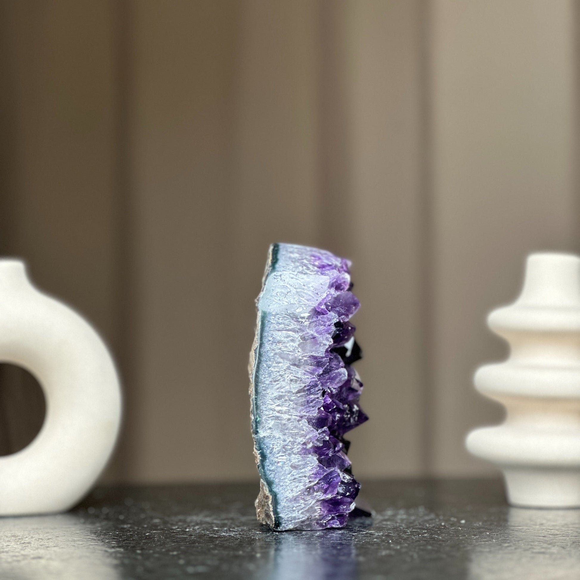 Its vibrant deep purple color is characteristic of the geodes extracted from URUGUAY, one of the few places in the world where you can find. It was extracted respecting the strict standards of open-pit mining in our country that ensure the safe work.