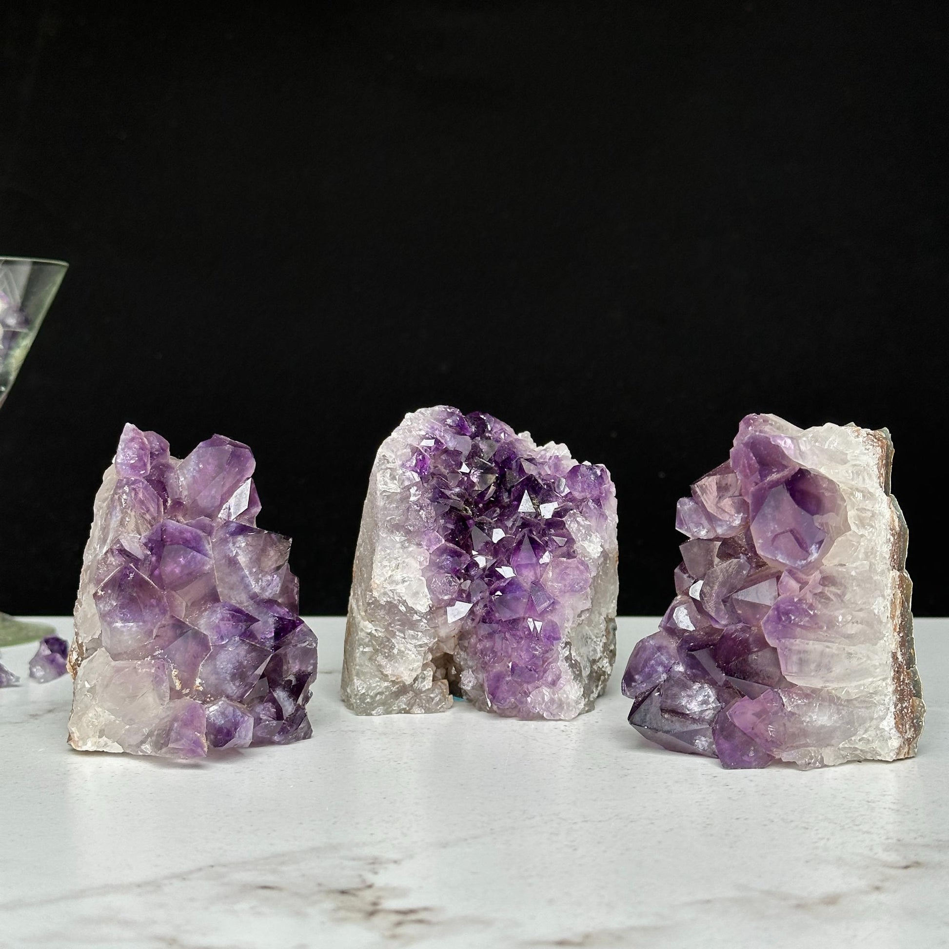 This set of amethysts crystals clusters has the highest quality of the semi precious stones. It's an amethyst geode set perfect for home decoration.