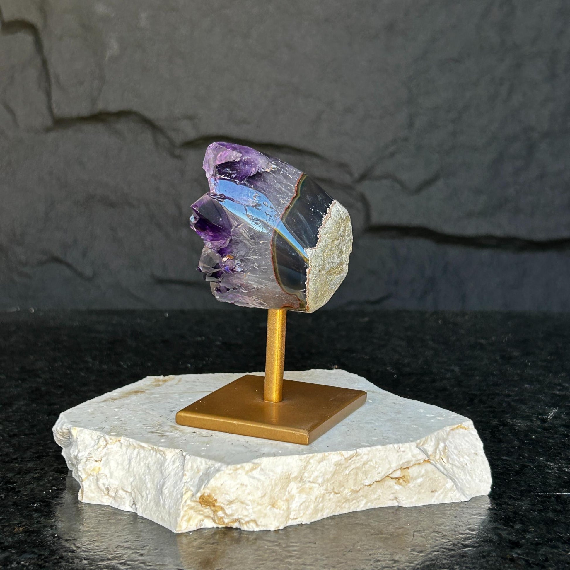 These A quality amethyst crystals with metal stand have the highest quality of the semi precious stones. Its colors are 100% natural.