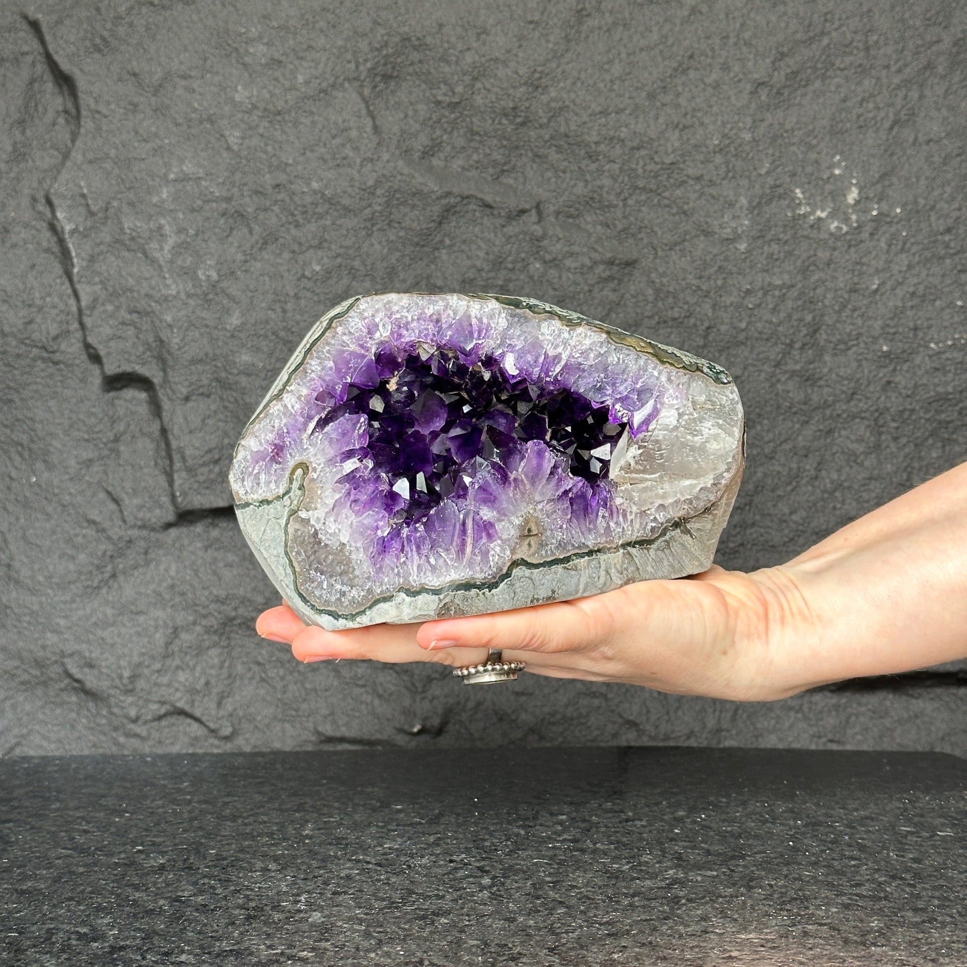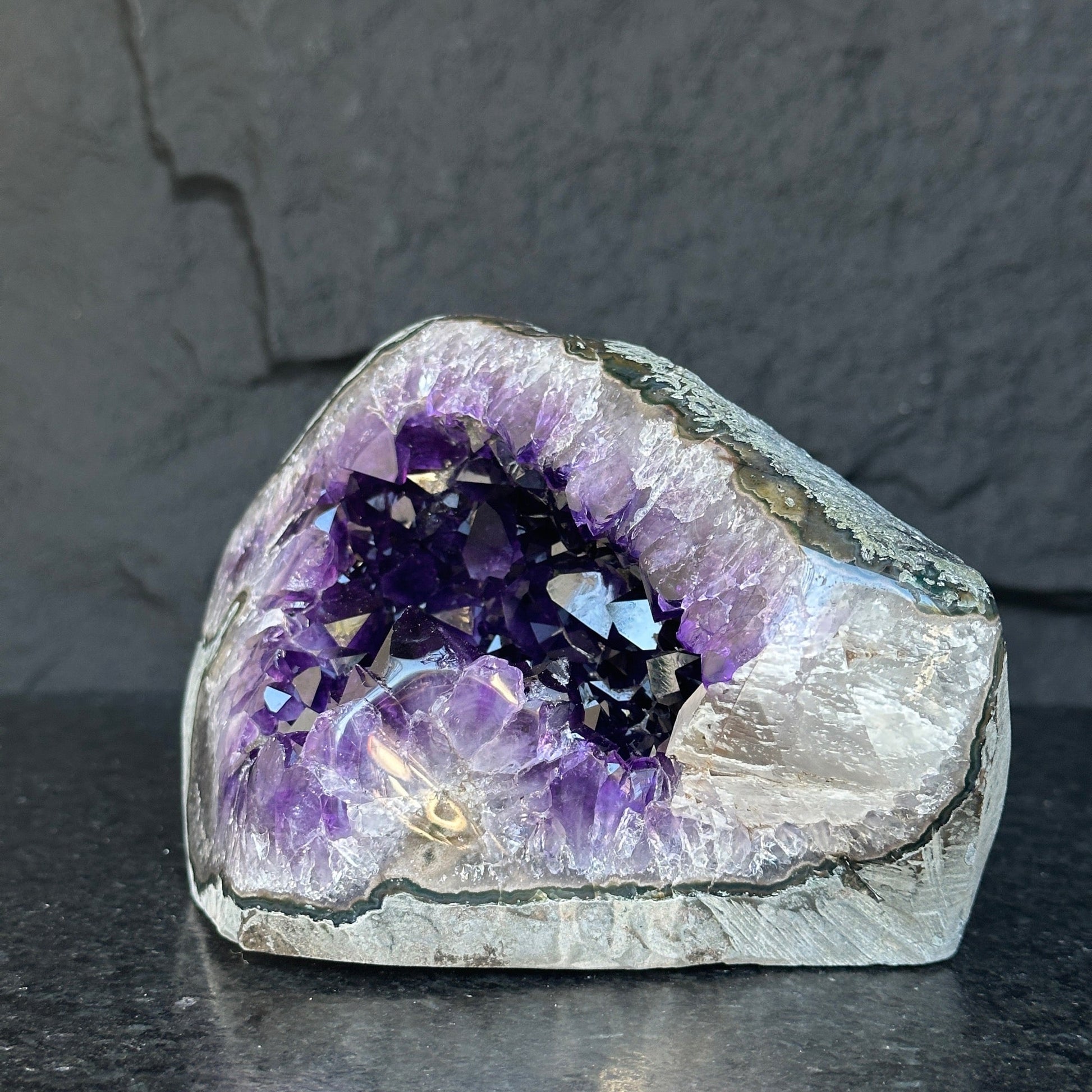 This crystal piece is made from natural amethyst stone from Uruguay.