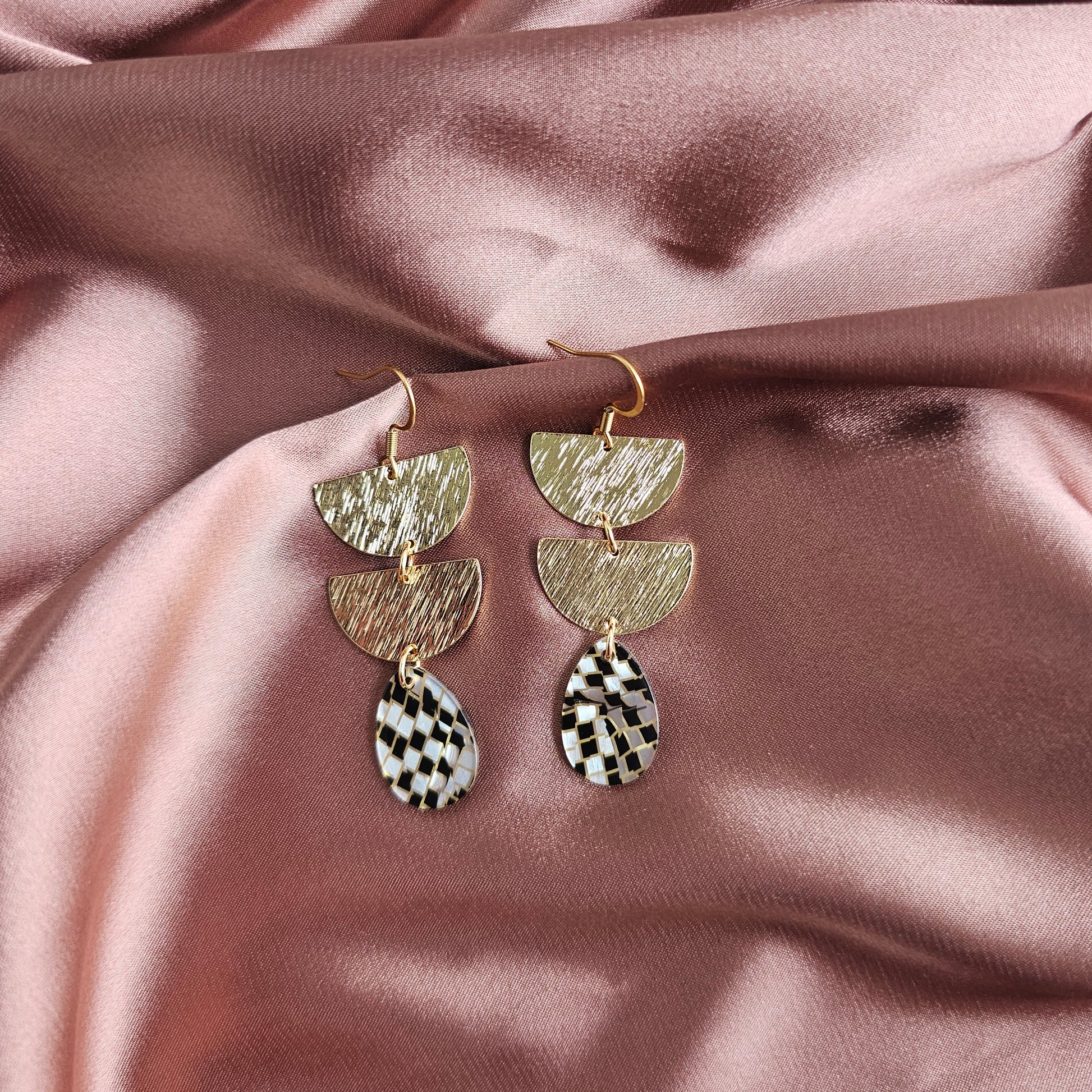Increase quantity for Aria Earrings - Black Shimmer Checker