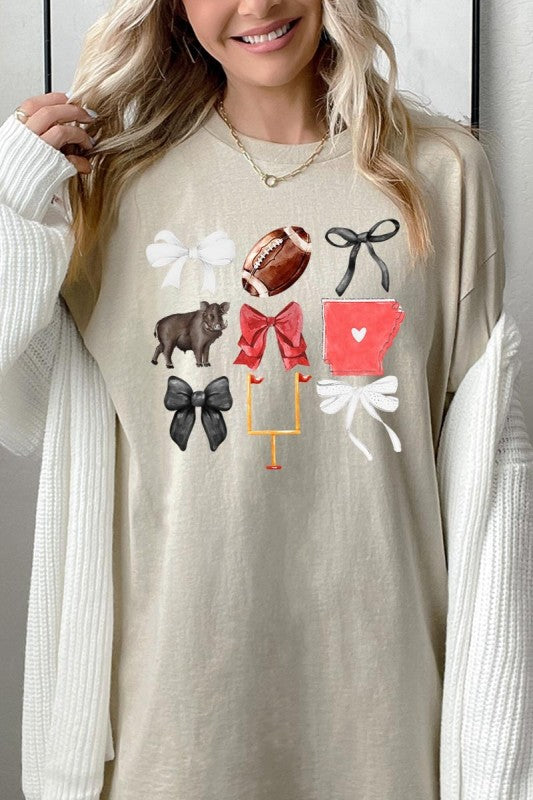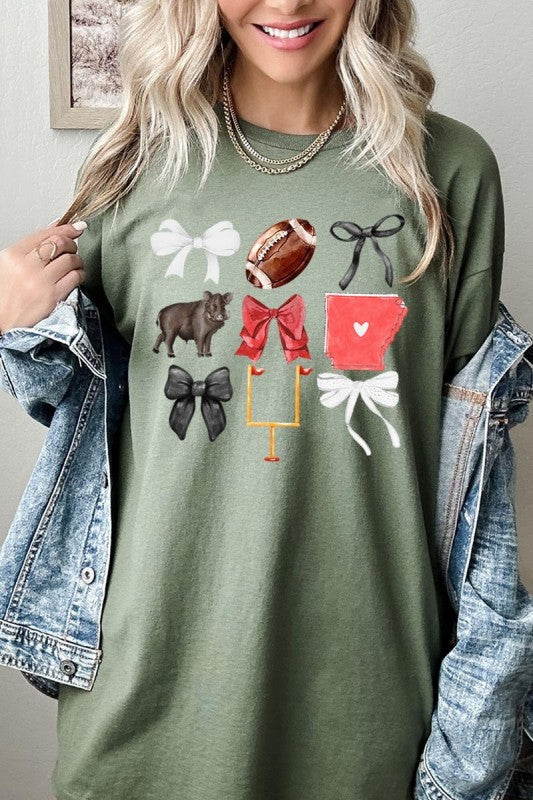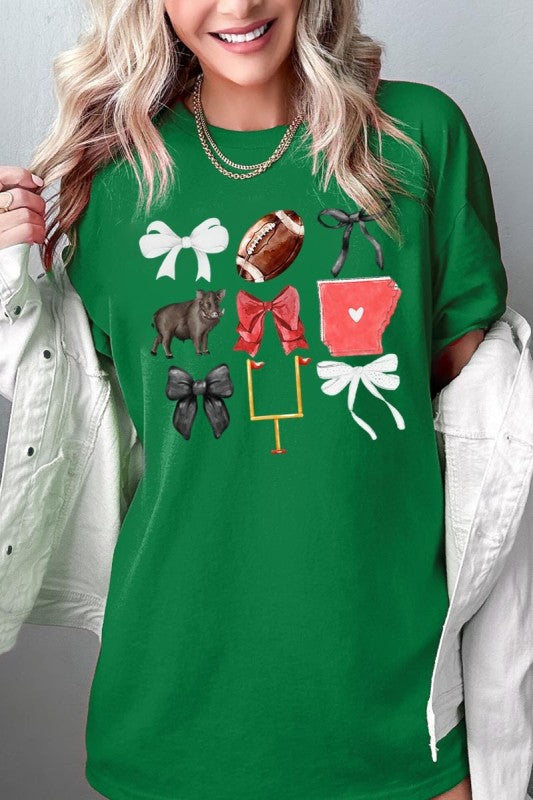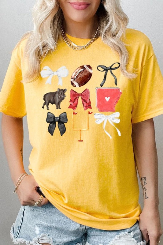 Game day tee, football graphic, cheer bow shirt, cute sportswear, tailgate, team spirit Graphic Heavy Cotton Tee.