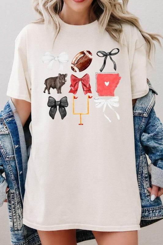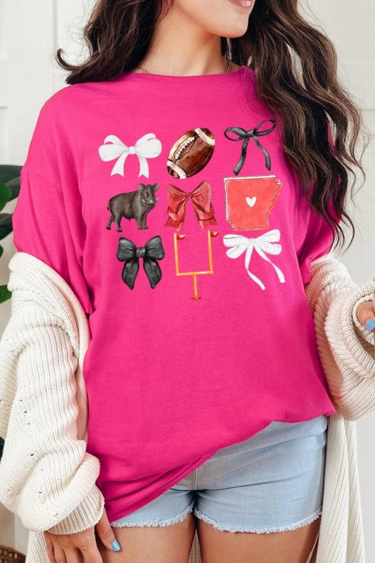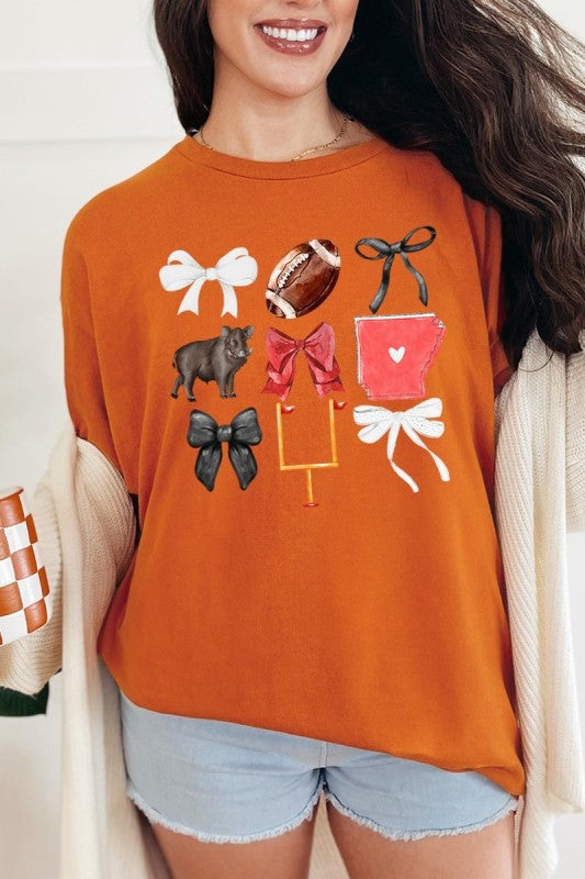 Game day tee, football graphic, cheer bow shirt, cute sportswear, tailgate, team spirit Graphic Plus Size Heavy Cotton Tee.