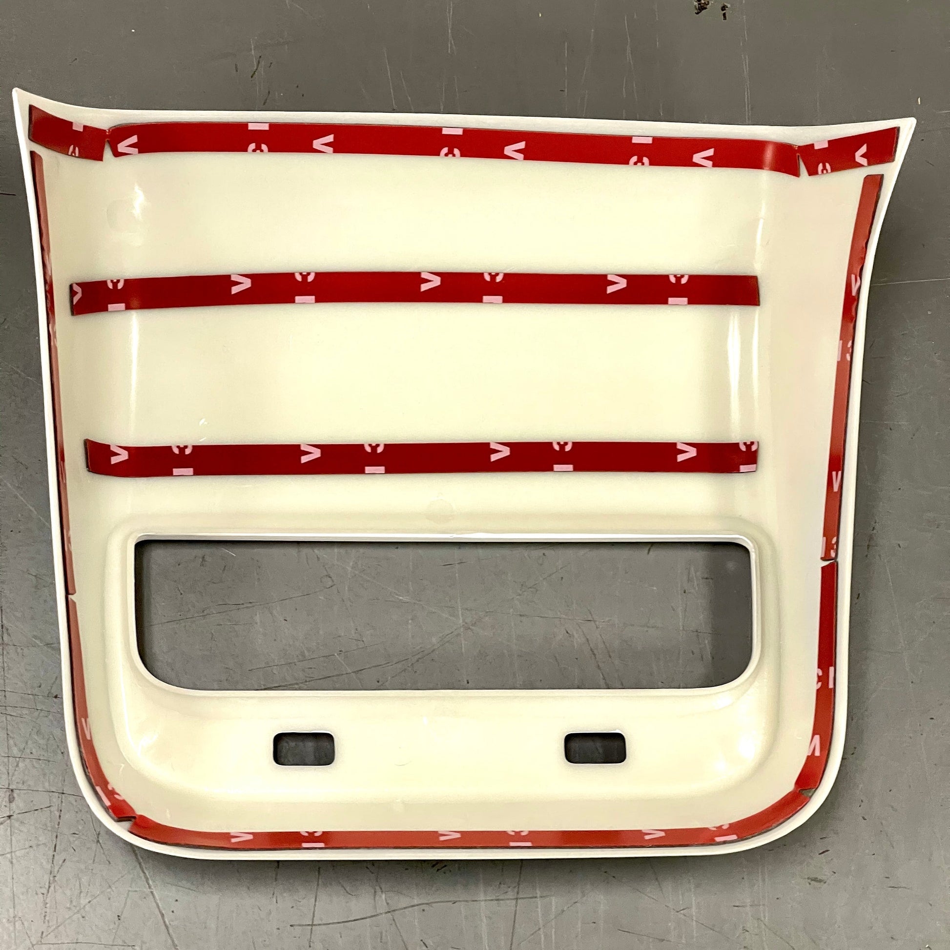 Tesla Model 3 Model Y Back Seat Vent & USB Cover in ABS Carbon Fiber.This unit covers and protects your plastic grey section behind your armrest all the way below the USB ports.It protect the air vent from being scratched or damaged by your child's shoes. It also protects the air vent from being scratched by your phone when charging.
