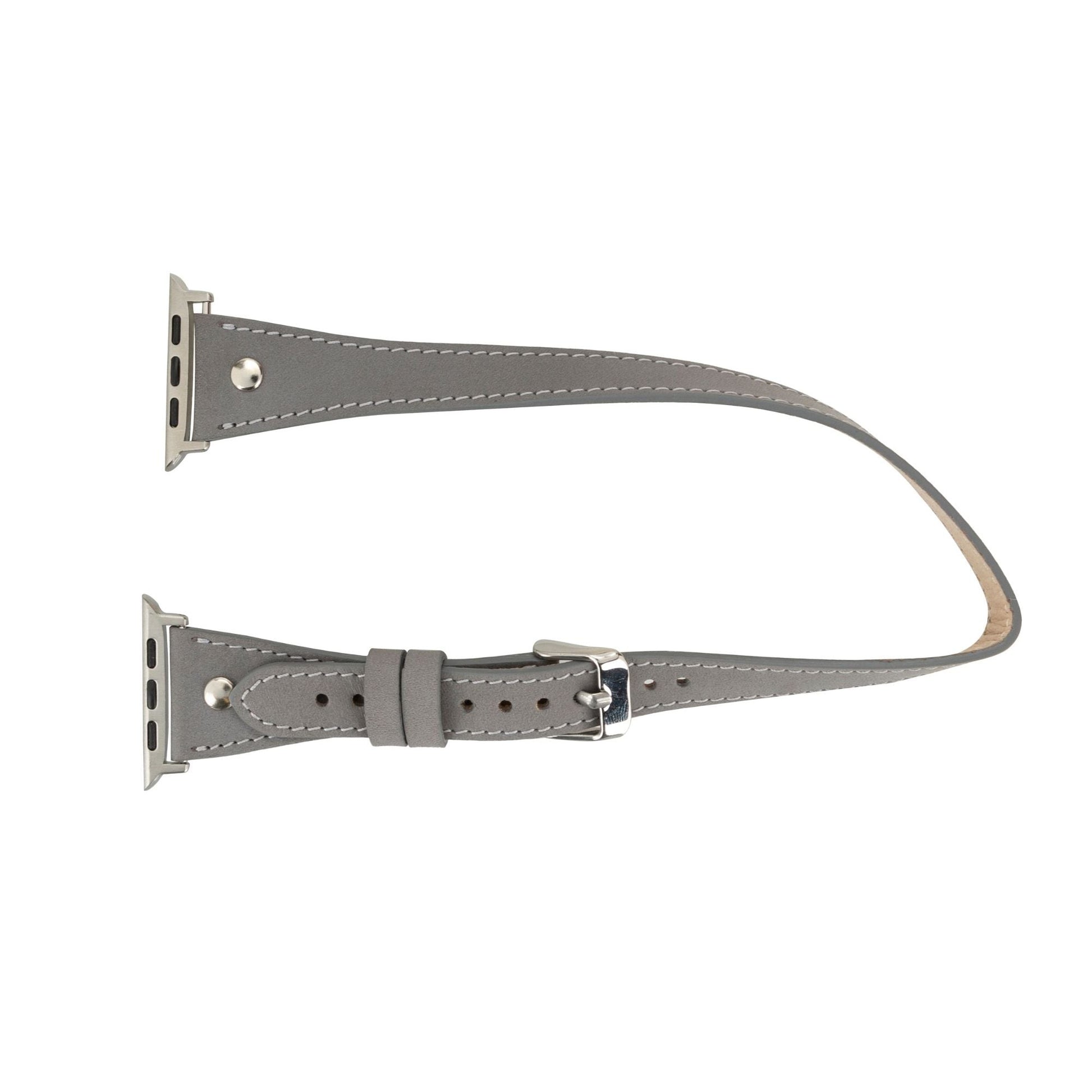 This leather band comes with a silver buckle, silver adapters, and silver snaps.