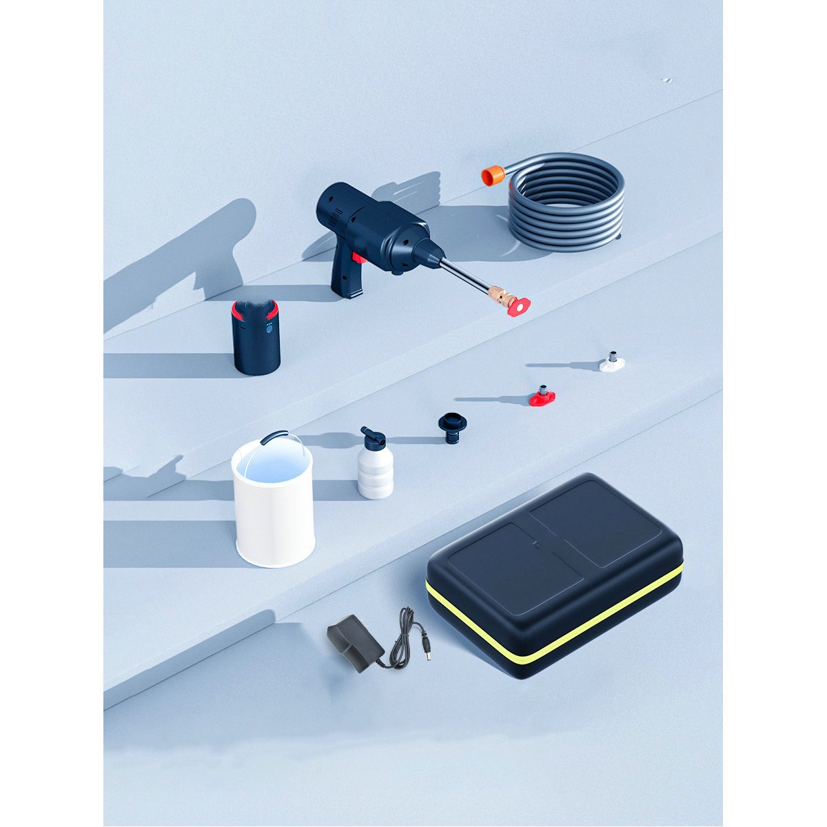 Size: 490mm*180mm*87mm Weight: about 1300g Shell material: ABS Waterproof grade: IPX4 Power: 130W Water pressure: 200psi Water flow rate: 33L/min Range: 6 meters Battery life: 40 minutes DCinput:12V