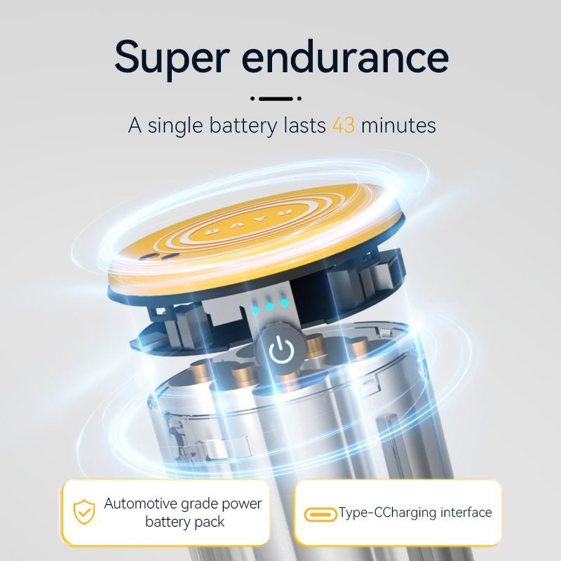 When designing a vacuum cleaner, we consider most issues such as vacuum degree, vibration, noise, filtration capacity, and ease of cleaning. After the completion of the first engineering prototype, the vacuum degree has not reached the design standard. , motor and air duct are reset. After going through multiple versions, we will finally get a very good vacuum indicator. It has a super suction of 19500pa and can work continuously for 60 minutes at the same time, but its volume is only one It is the size of a Coca-Cola bottle and weighs only 660 grams. It can easily help us clean efficiently in the car and at home, and at the same time, it is very easy to store and carry.