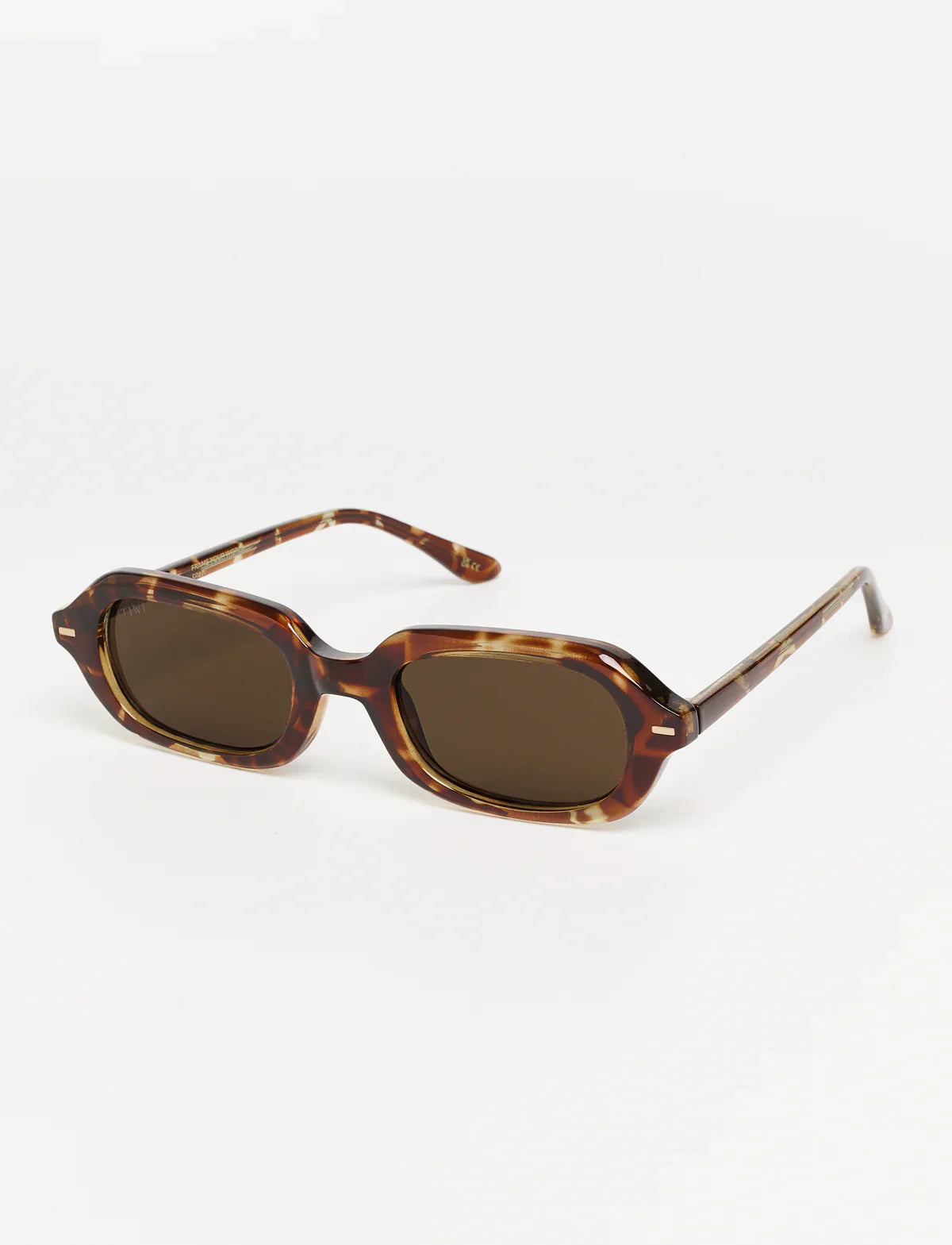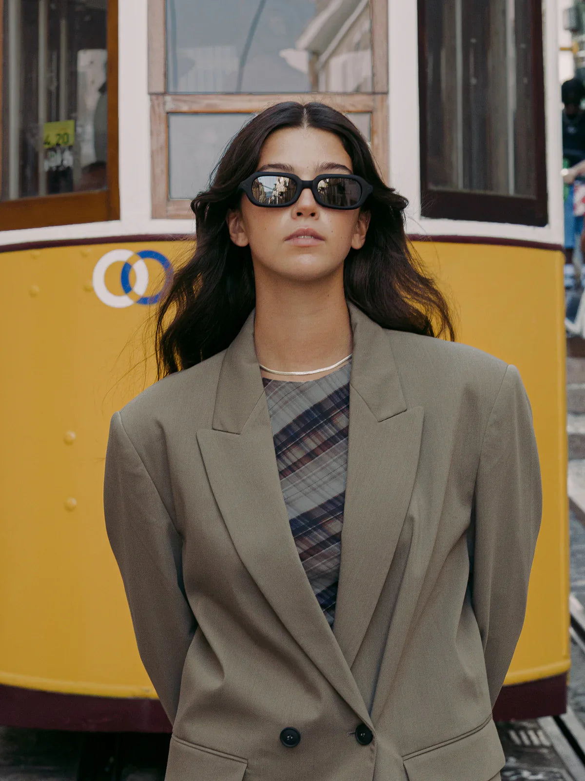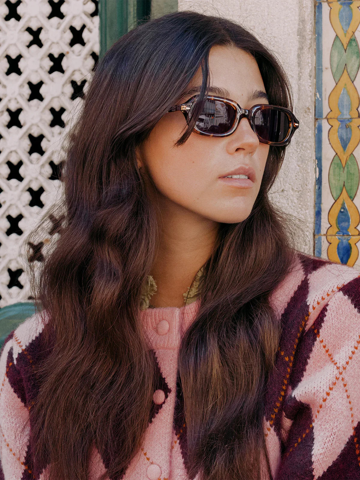 BENNET exudes character. It stands out for its rectangular shape and compact volume, with firm, slightly rounded lines. A model that conveys attitude and confidence, with finishes ranging from more neutral tones like Havana and total black to shiny smoke brown and two-tone green/pink.