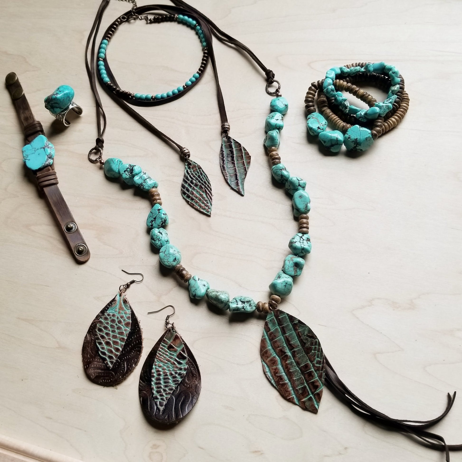Add a touch of uniqueness to your style with our Blue Turquoise Slab on Narrow Leather Cuff. The fashionable and narrow design showcases a stunning blue turquoise slab, making it a statement piece. Elevate your outfit and showcase your personal style with this one-of-a-kind accessory.