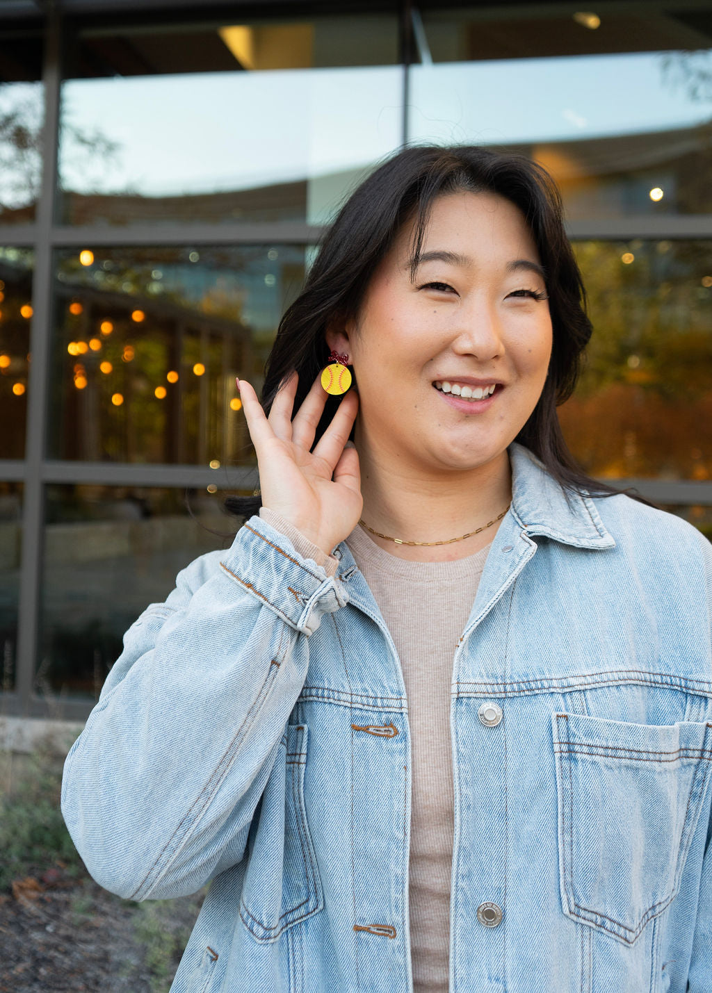 Step up to the plate in style with our Game Day Bow Softball Earrings! Featuring a glittery yellow softball charm and a sweet red bow, these earrings are a total home run for cheering from the stands or snacking in the shade. Lightweight and full of charm, they’re perfect for softball moms, fans, and anyone who likes a little sparkle.