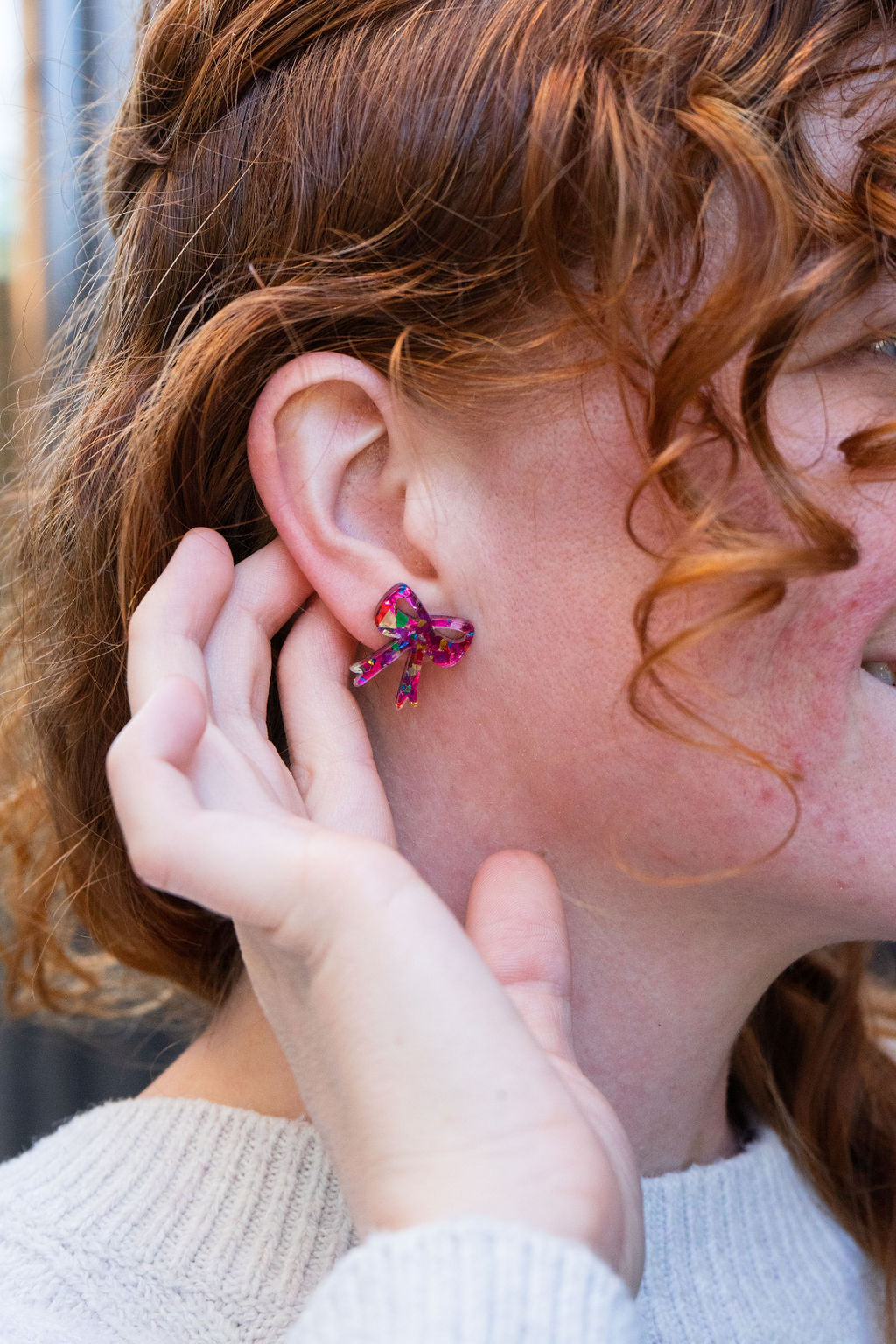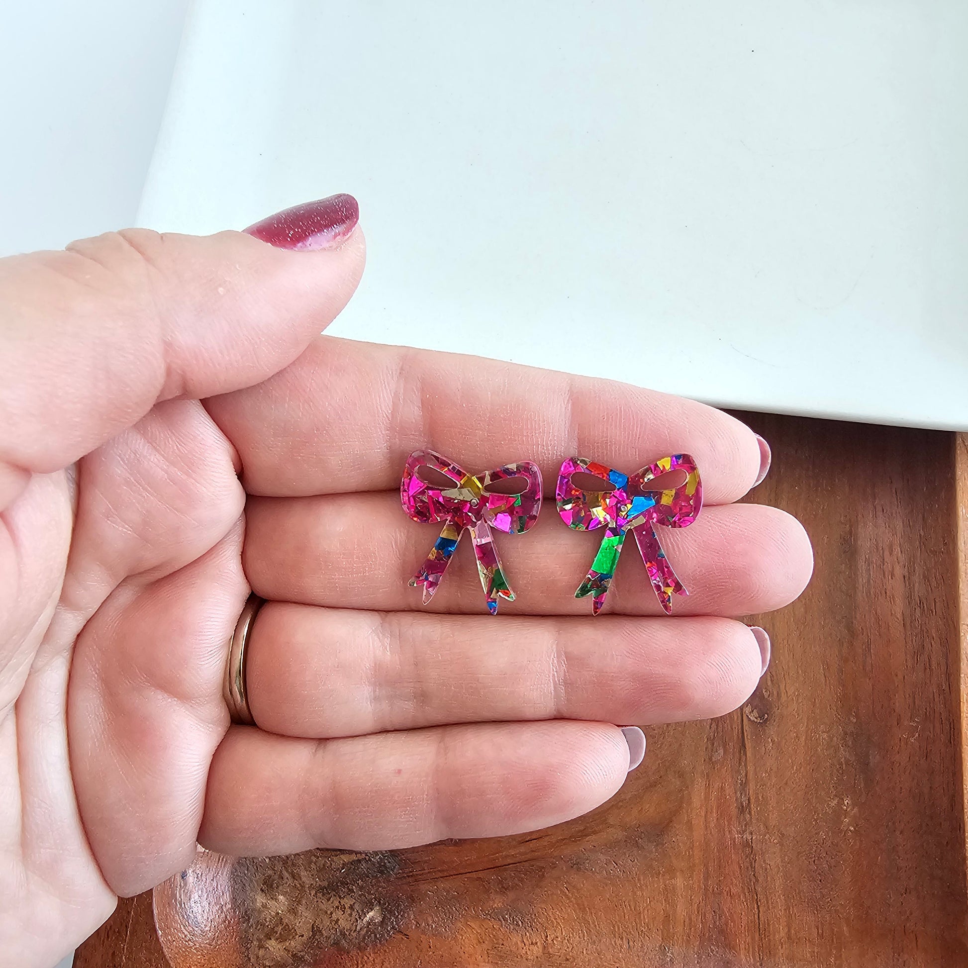 Not only are our sparkly confetti Bow Studs the perfect accessory for yourself, but they also make a thoughtful and festive gift for friends, family, and loved ones. Spread the holiday cheer with our Bow Studs 🎁🎄✨