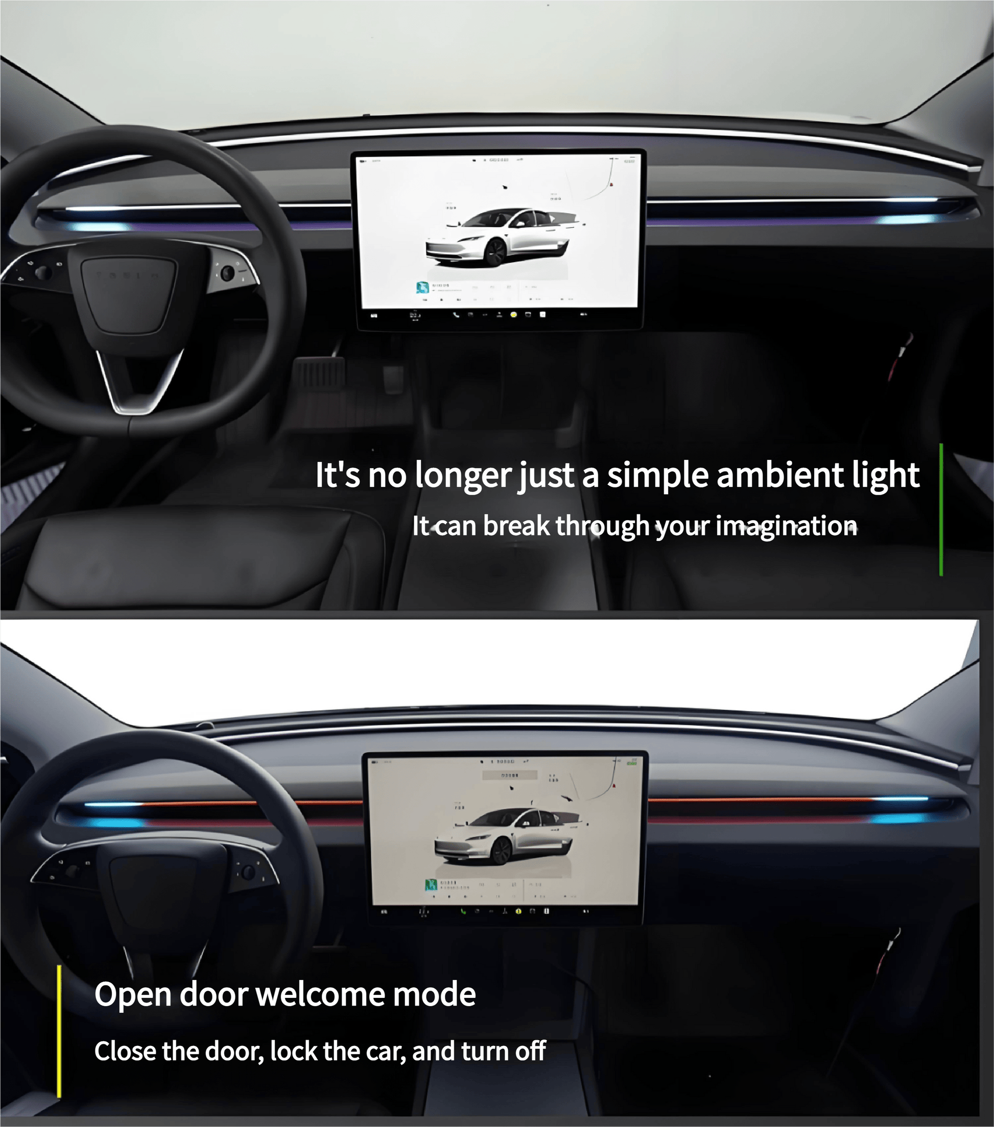 The lights illuminate in a welcoming sequence when the doors are opened, and gracefully turn off when the doors are closed and the vehicle is locked, adding a touch of sophistication to your Tesla.