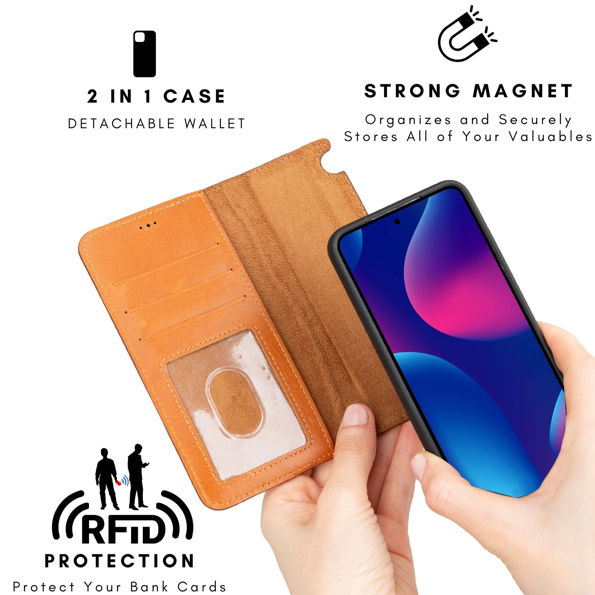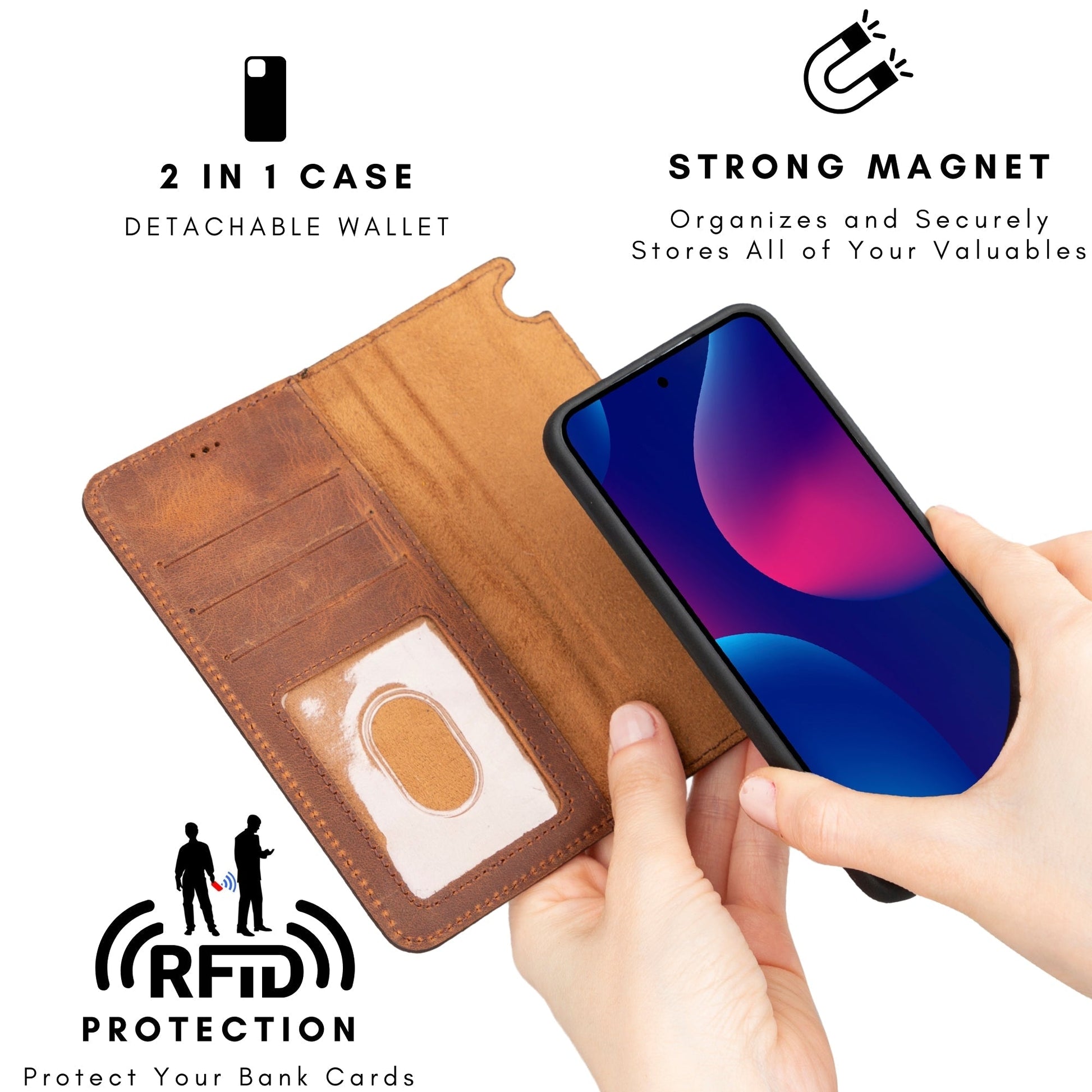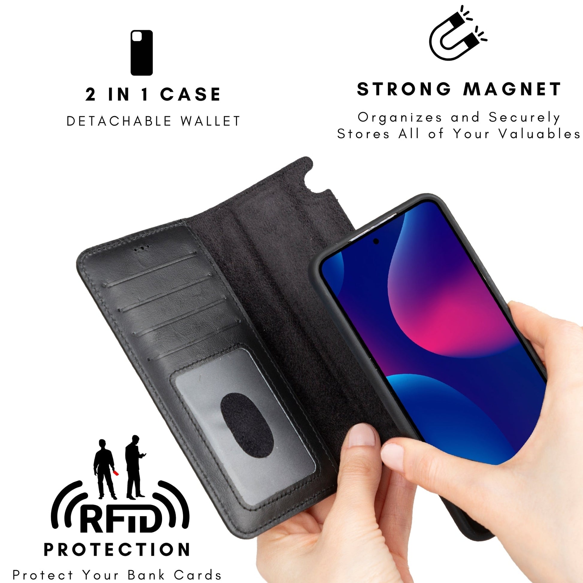 Detachable Magnetic Case: A magnetically removable phone case is included inside the wallet for versatility.