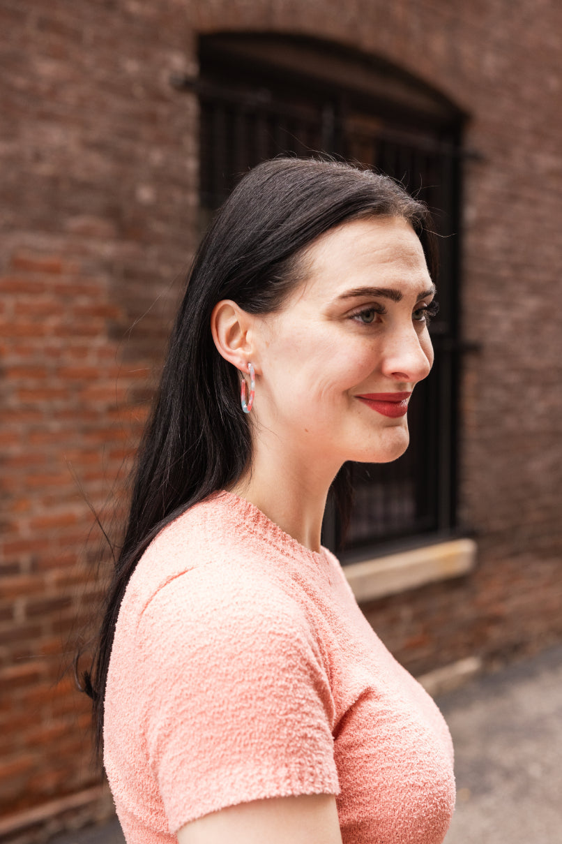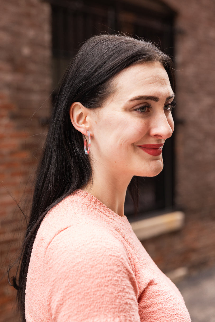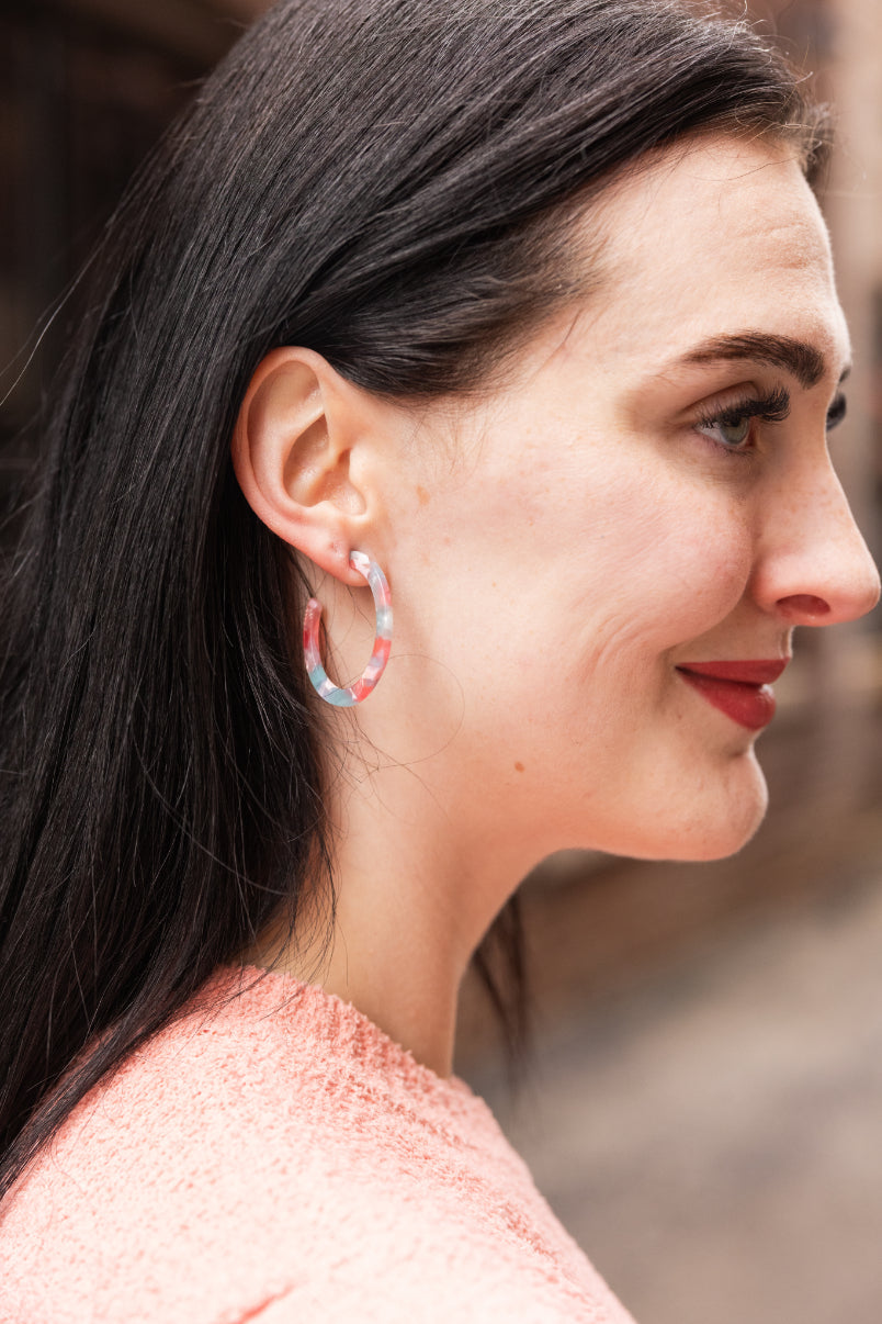 Camy is our medium sized hoop. Our signature ultra lightweight acrylics in gorgeous colors make them the perfect go-to wardrobe staple.