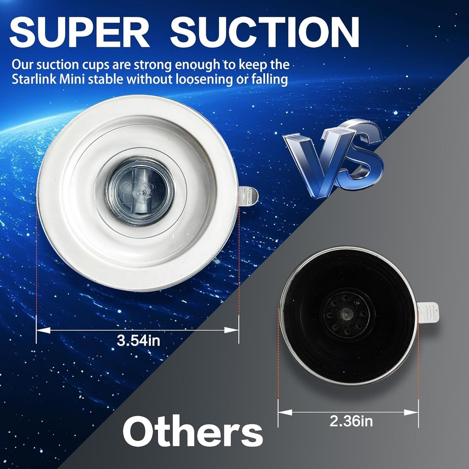 Super Strong Suction: Engineered with a large, 3.54-inch (9 cm) diameter suction cup, significantly larger than typical 2.36-inch alternatives. This "SUPER SUCTION" design ensures exceptional stability, keeping your Starlink Mini firmly in place without loosening or falling, even in challenging conditions.