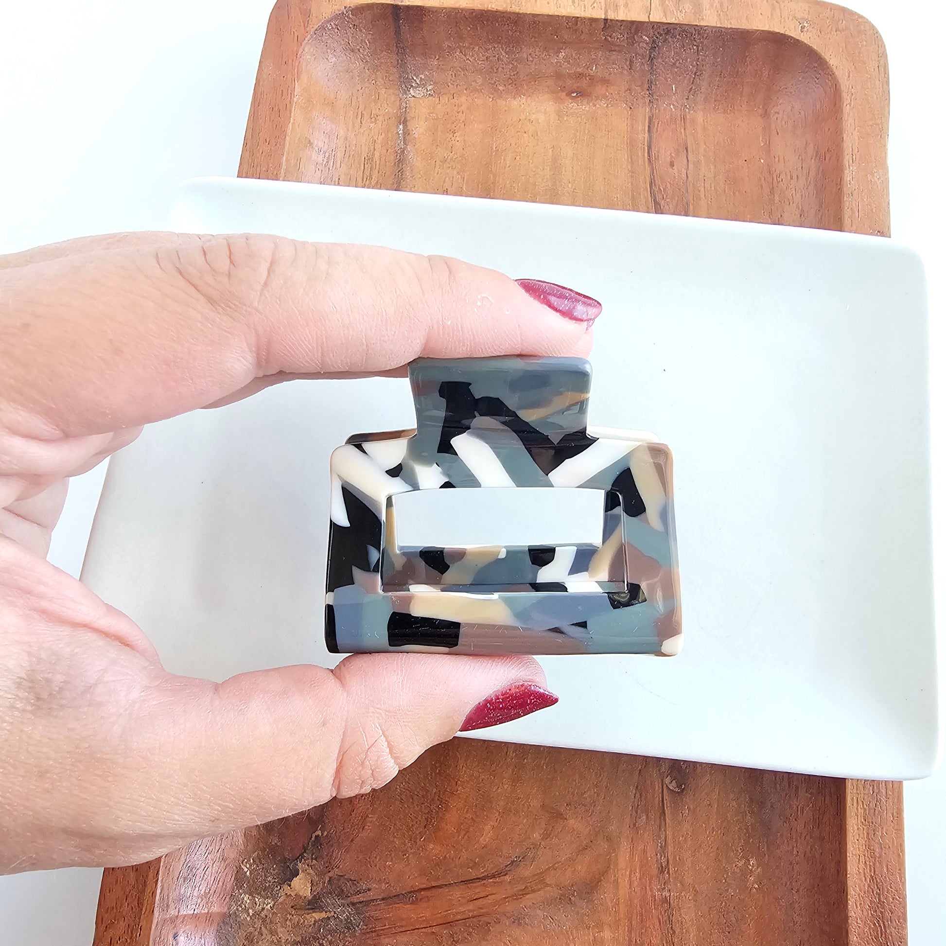 • Plant-based acetate acrylic hair claw with a clear protective cover over the spring.