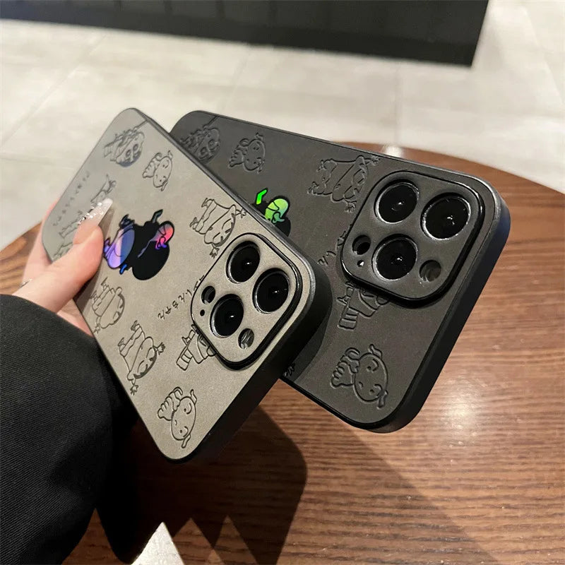 Protect your iPhone in style with this Cartoon Crayon Shin-chan leather-textured laser phone case. Designed for a comfortable grip and durability, it combines unique character charm with premium leather-like feel. This case offers reliable protection while letting your personality shine through every day.