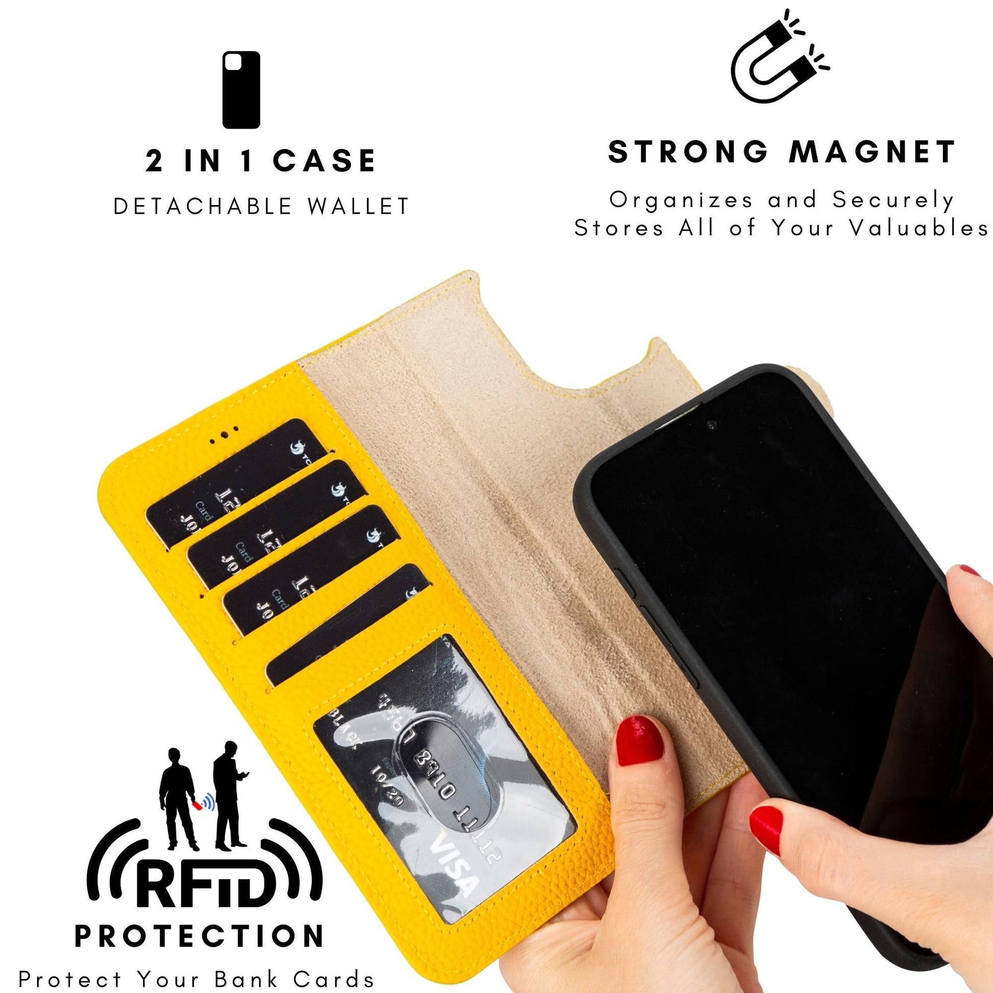The TORONATA iPhone leather wallets have a variety of slots and pockets to help you keep track of your cash, cards, and other necessities. The wallets are made to last thanks to their meticulous stitching and attention to detail, making them a trustworthy companion for your iPhone.