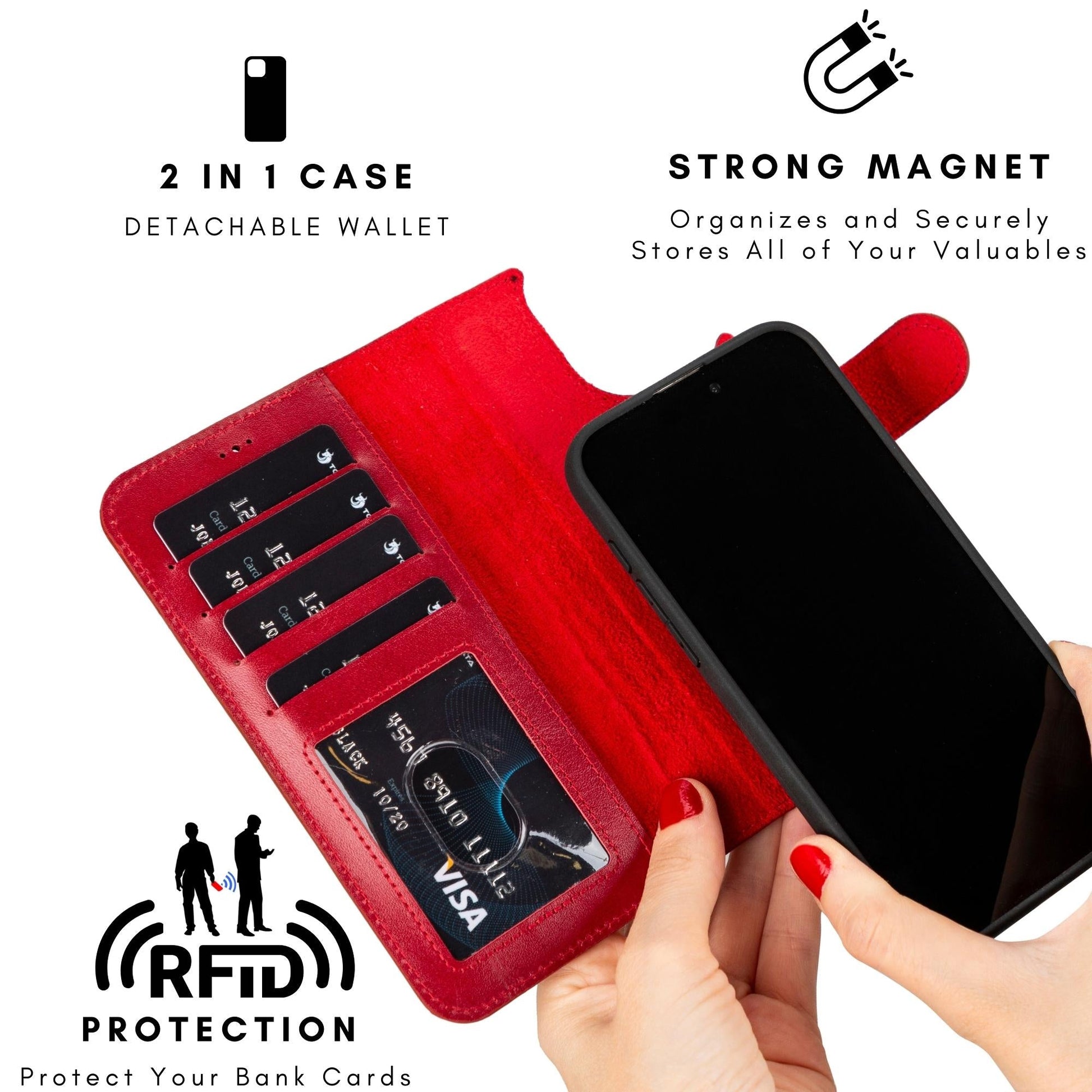 - Strong magnets keep your phone secure