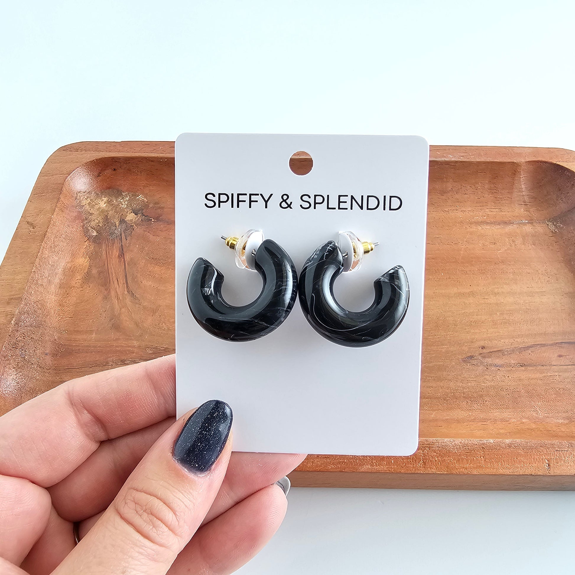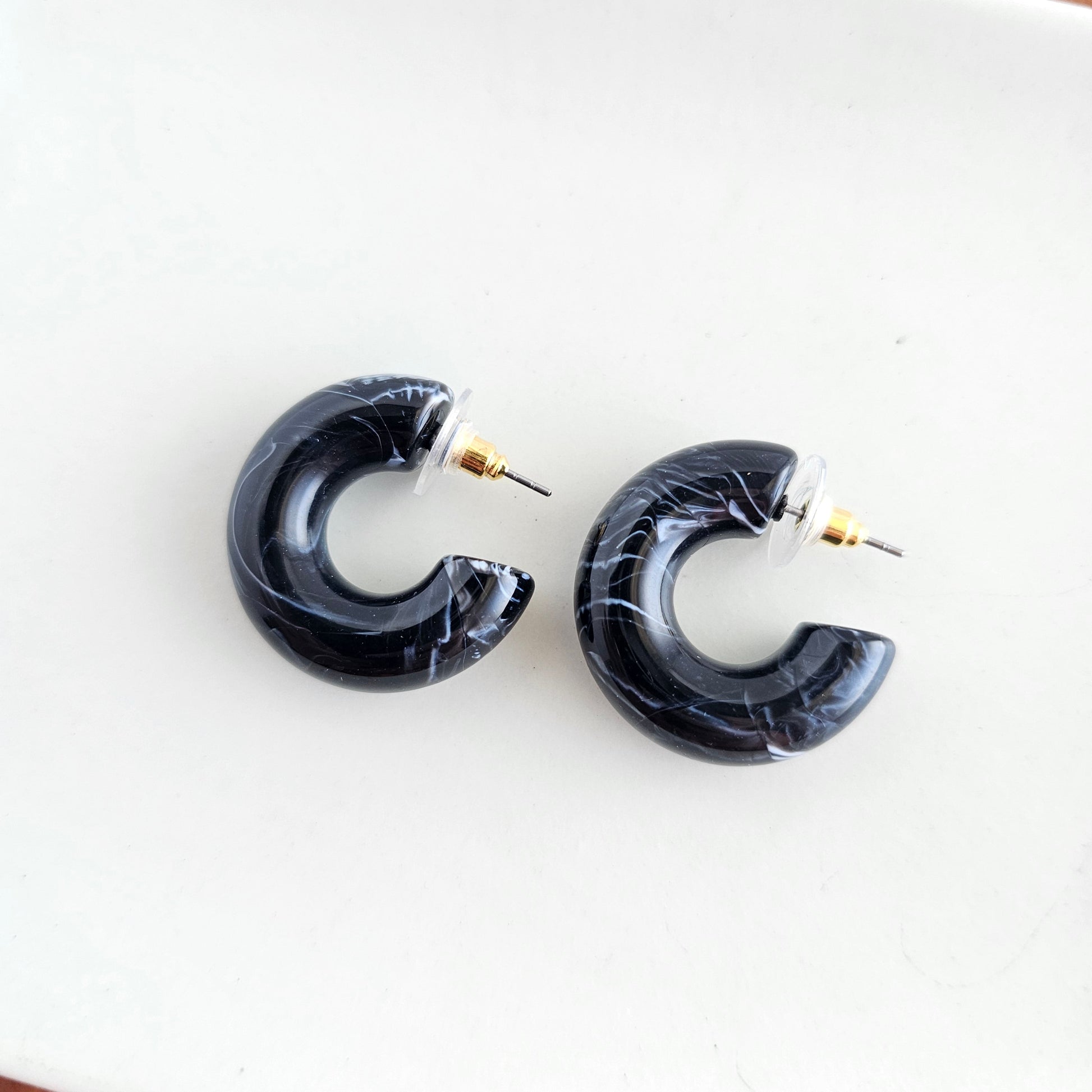 The Chloe Hoops boast a modern, chunky silhouette, crafted from durable resin for everyday wear. Their timeless design and long-lasting quality make them the perfect statement piece.
