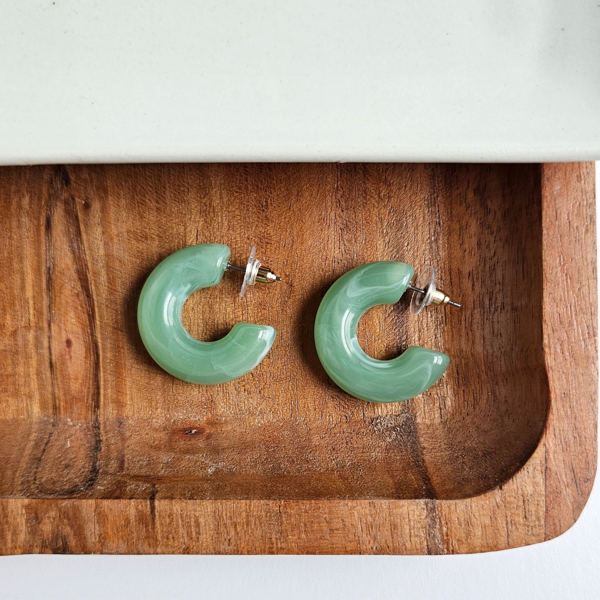 The Chloe Hoops boast a modern, chunky silhouette, crafted from durable resin for everyday wear. Their timeless design and long-lasting quality make them the perfect statement piece.