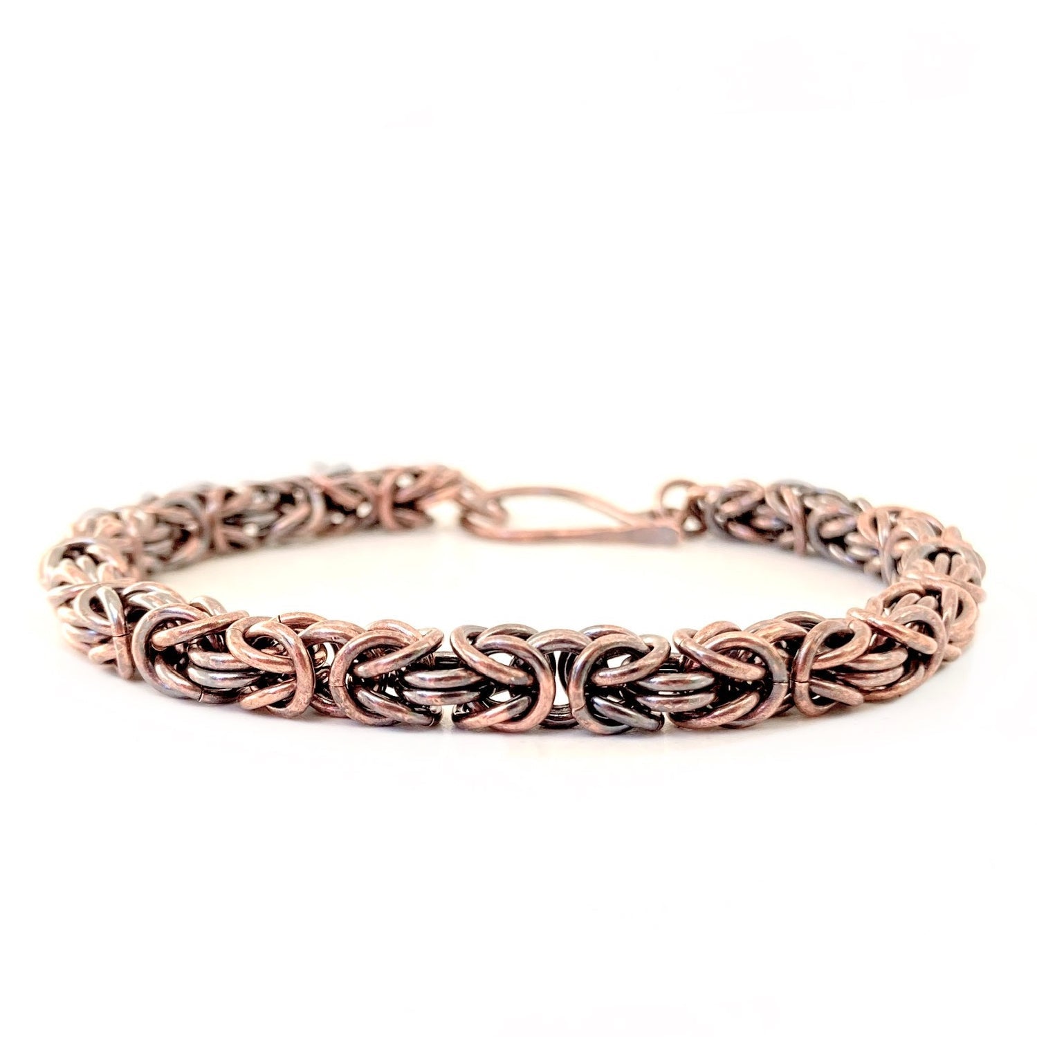Byzantine is one of the oldest chainmaille designs in history, thought to date back to ~300 BC. Similar to Box Chain, this bracelet is both beautiful and bold. This bracelet was entirely handmade - from each individual ring to forged hook clasp. Once creating the rings from wire in our studio, they are carefully connected link by link. Strong enough for daily wear, this piece is also stunning to wear for special occasions.