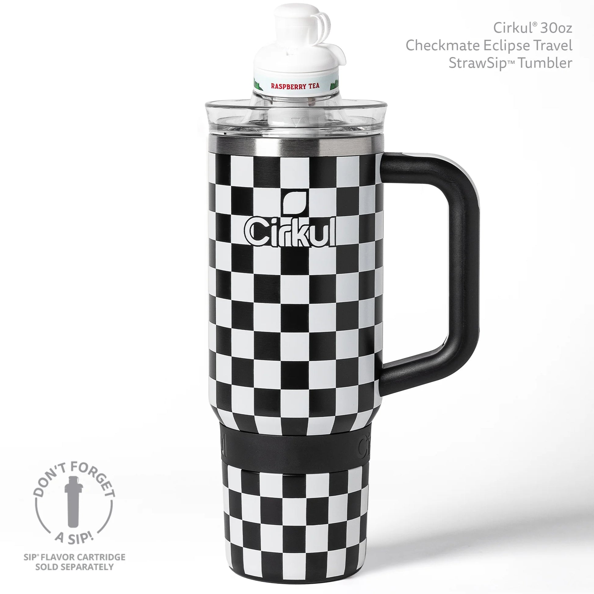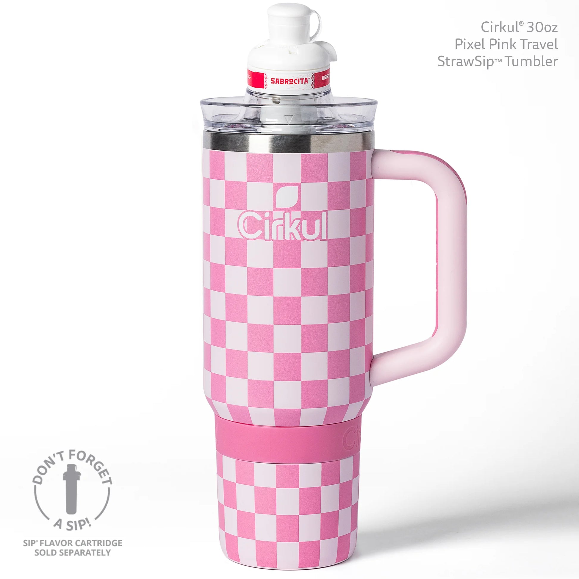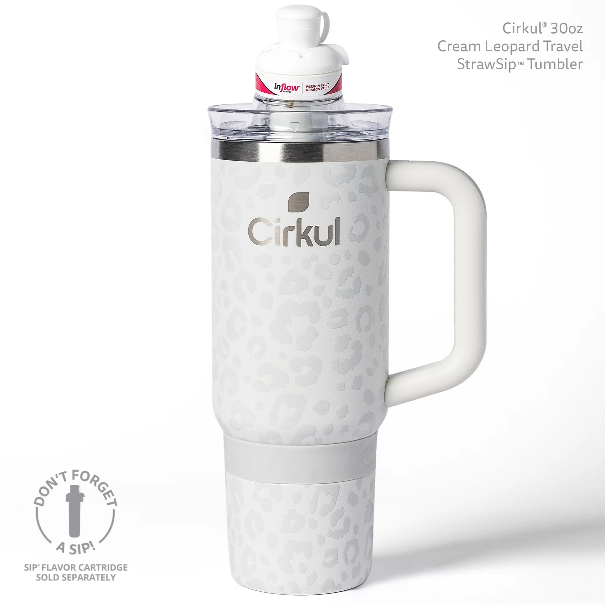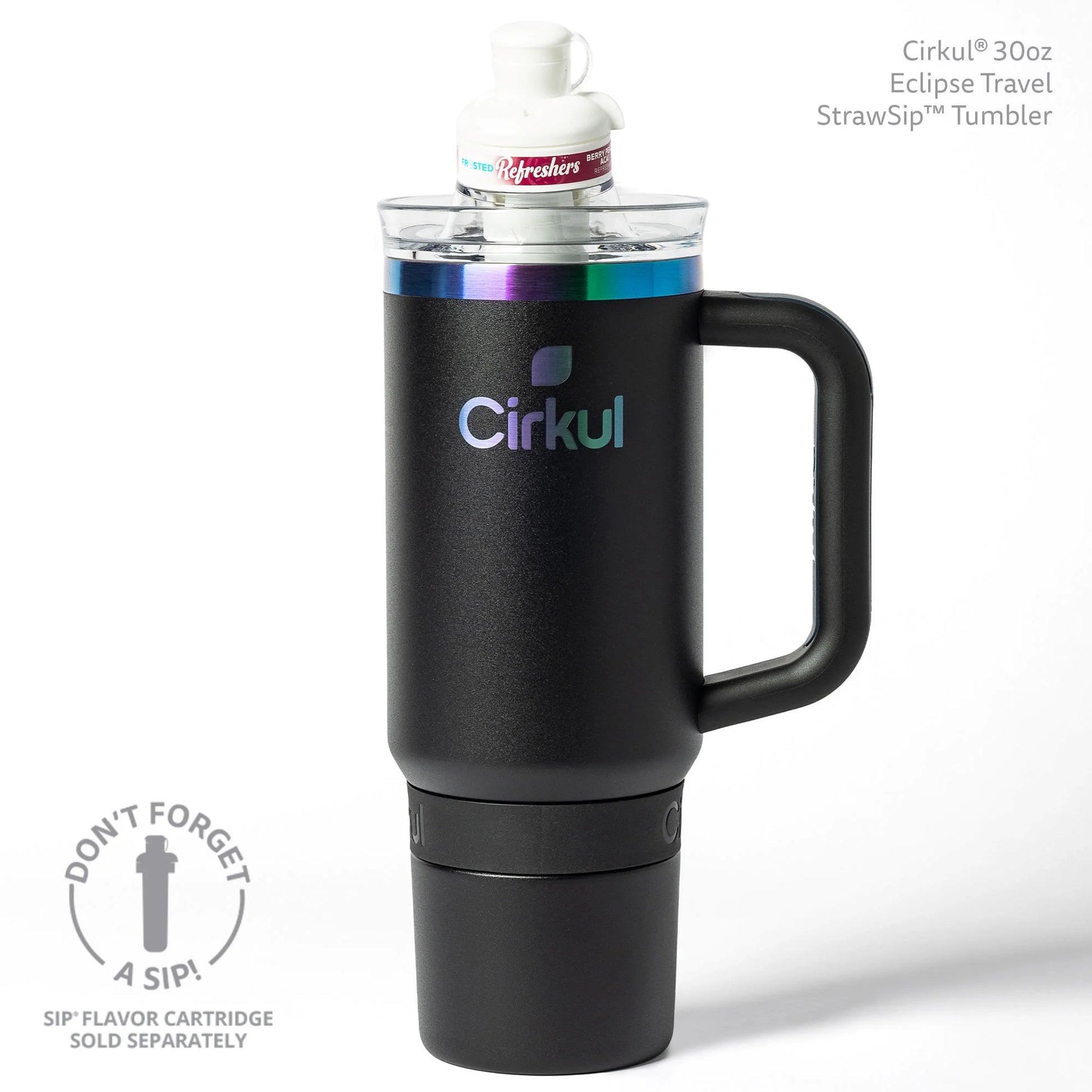 Increase quantity for Cirkul 30oz Travel StrawSip Double-Wall Insulated Stainless Steel Tumbler with Handle, Azure Shimmer (Light Teal Sparkle)