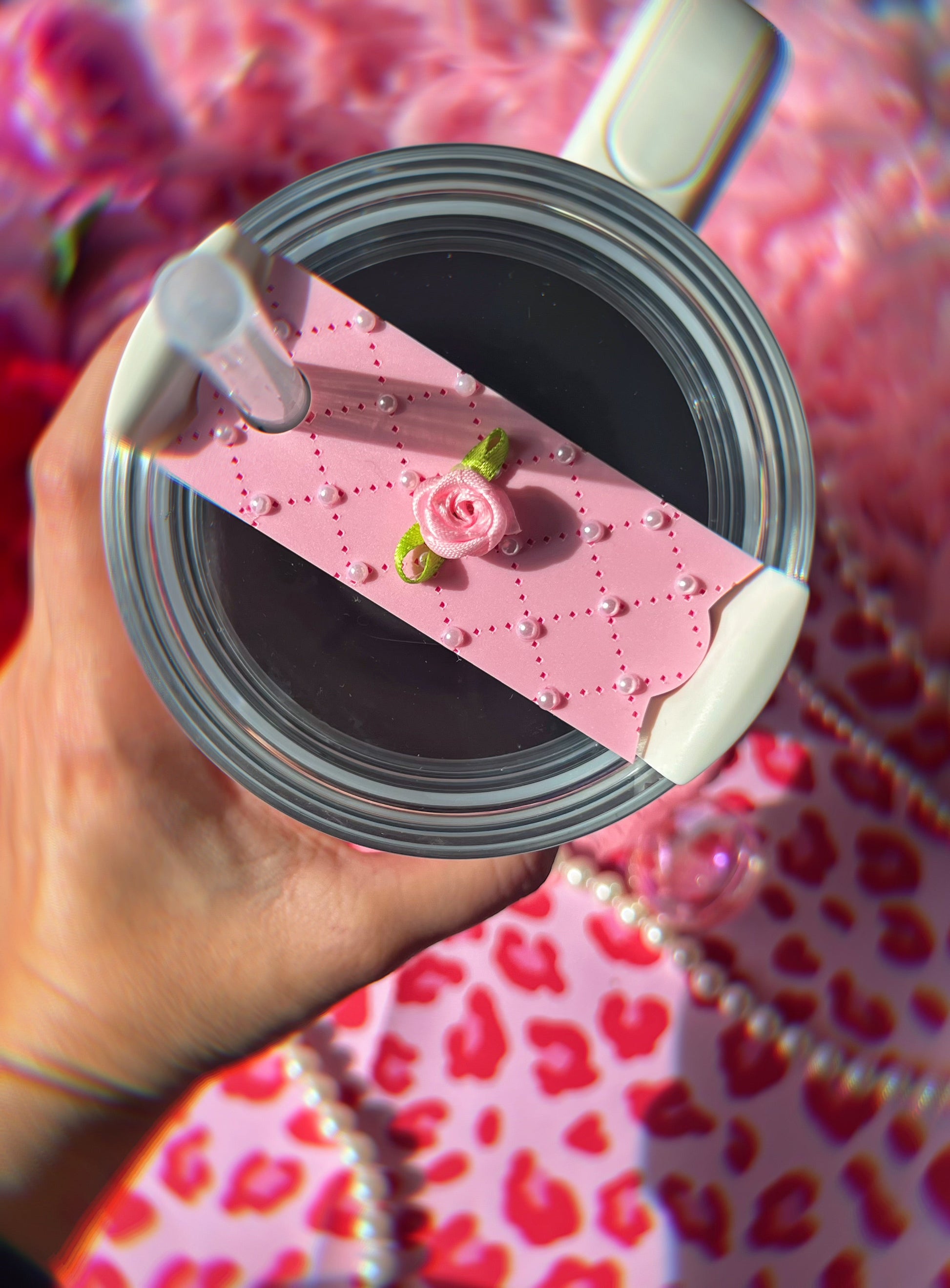 This listing is for ONE Coquette Quilted Pastel Pink Pearl H2.0 Cup Topper 40oz | 30oz | 20 oz