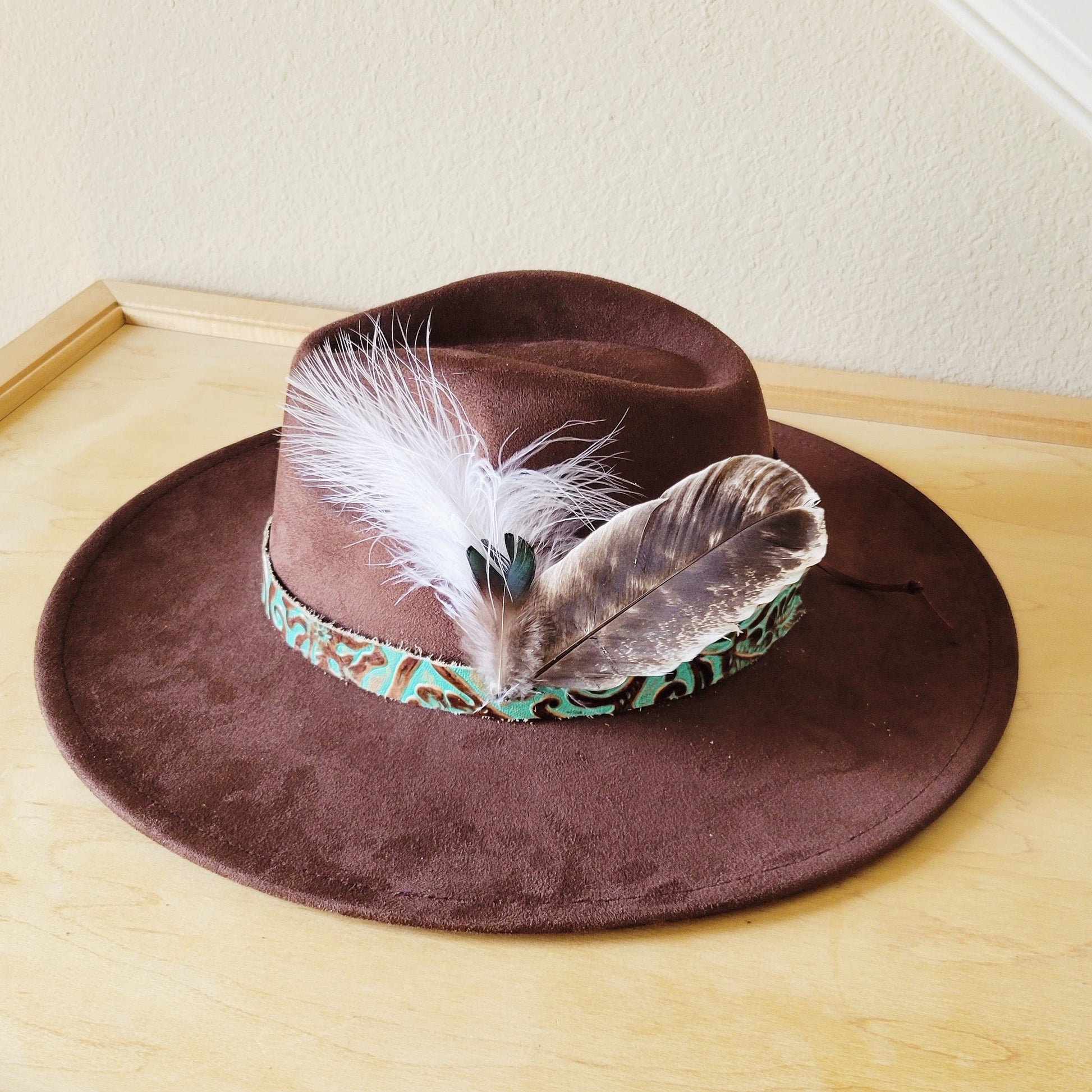 • The same primary feathers will be used on every hat accent.  Keep in mind, these will never be identical to the photo.  These are REAL feathers and no two could be alike without using fake ones--this is what sets your hat accent apart from others and will make it uniquely yours!