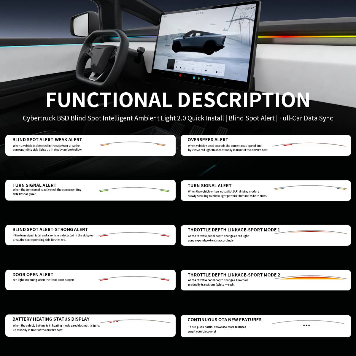 No, this Smart BSD Blind Spot LED Ambient Lighting Kit is exclusively engineered and custom-fit for the Tesla Cybertruck.