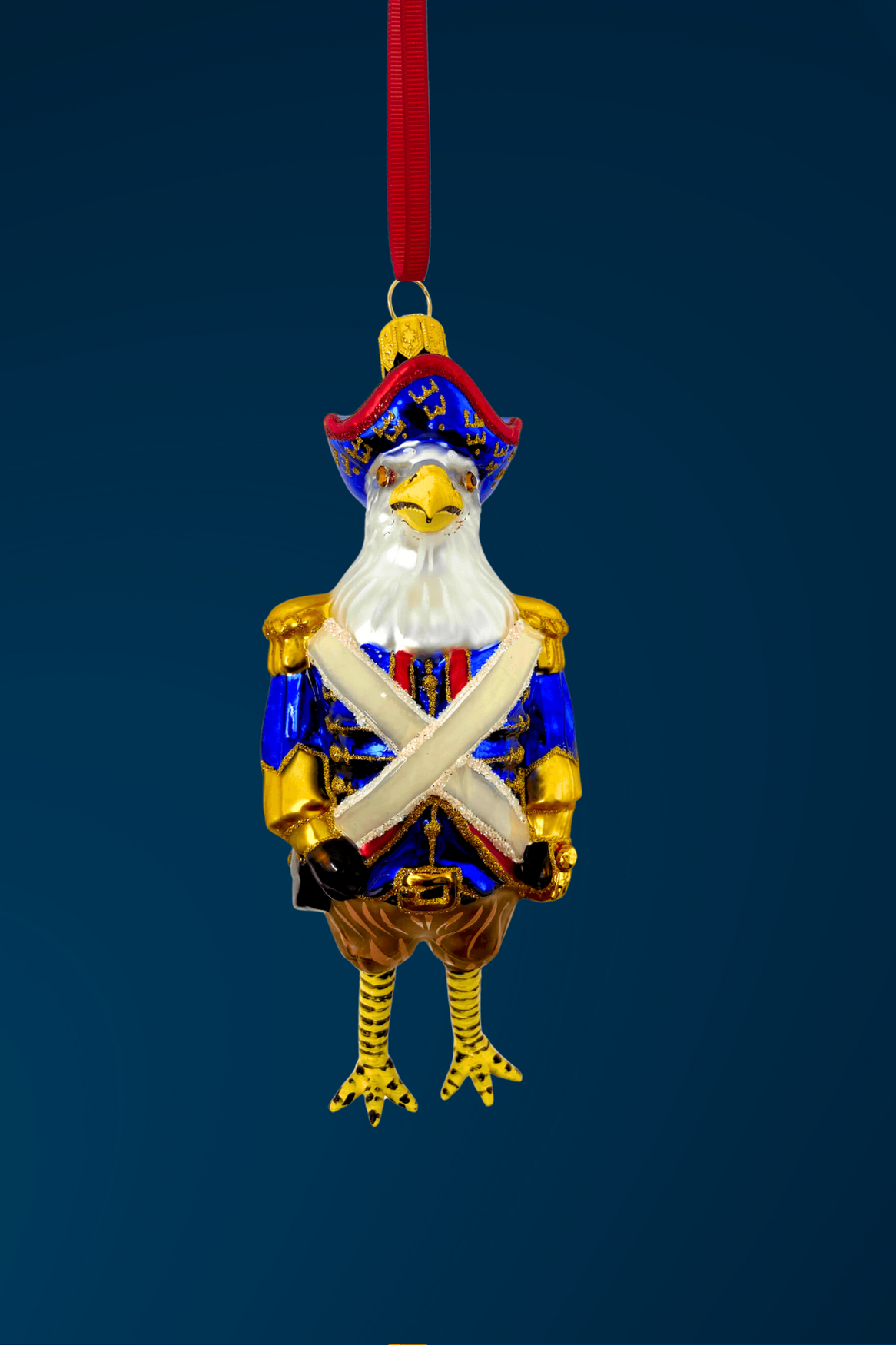 Our founding feathered friend arrives in his best blue coat, beaked with confidence and buttoned with flair. With gold epaulettes, a tricorn hat, and a gaze fixed firmly on freedom, he’s ready to ruffle a few (powdered) wigs.