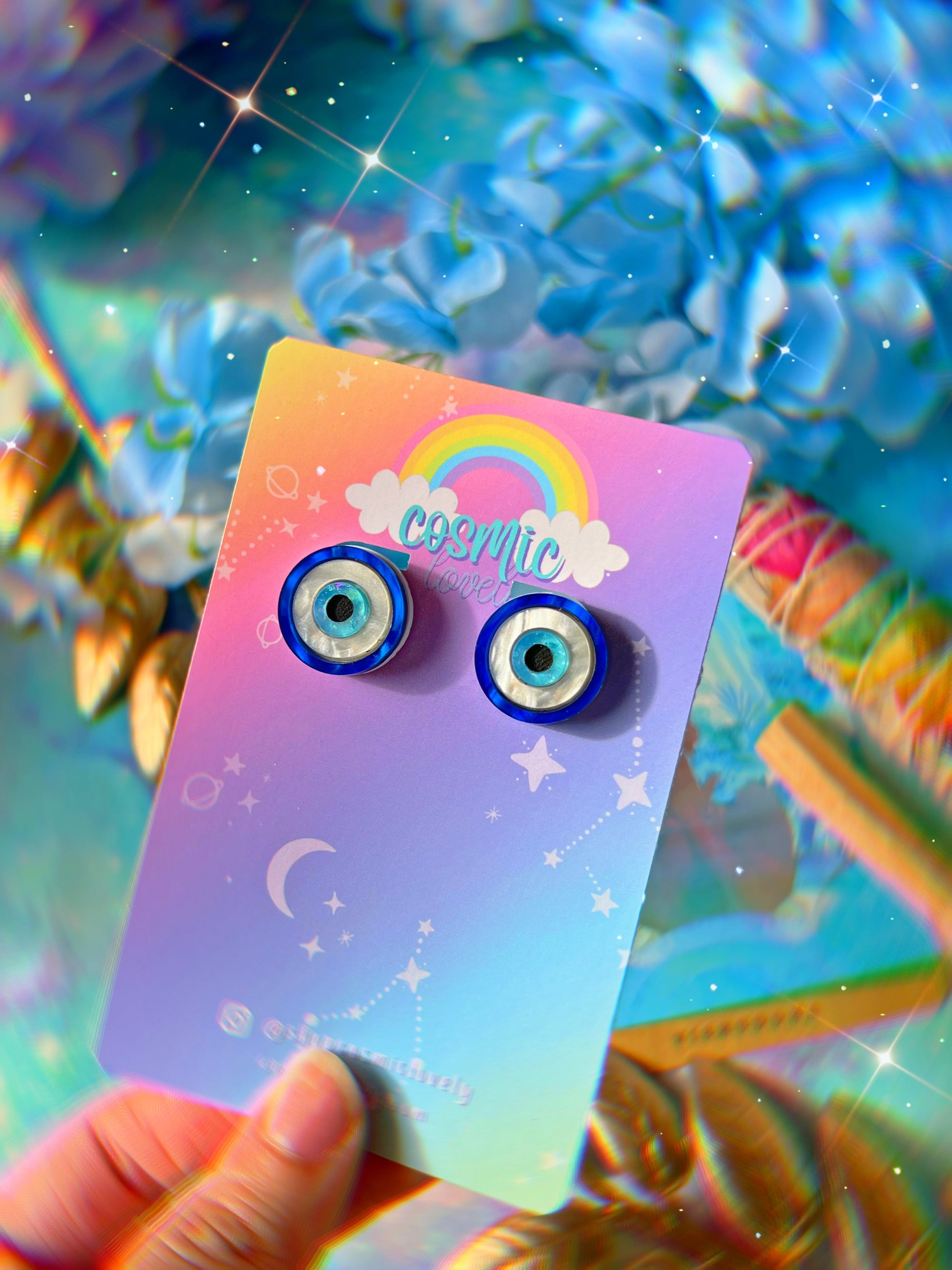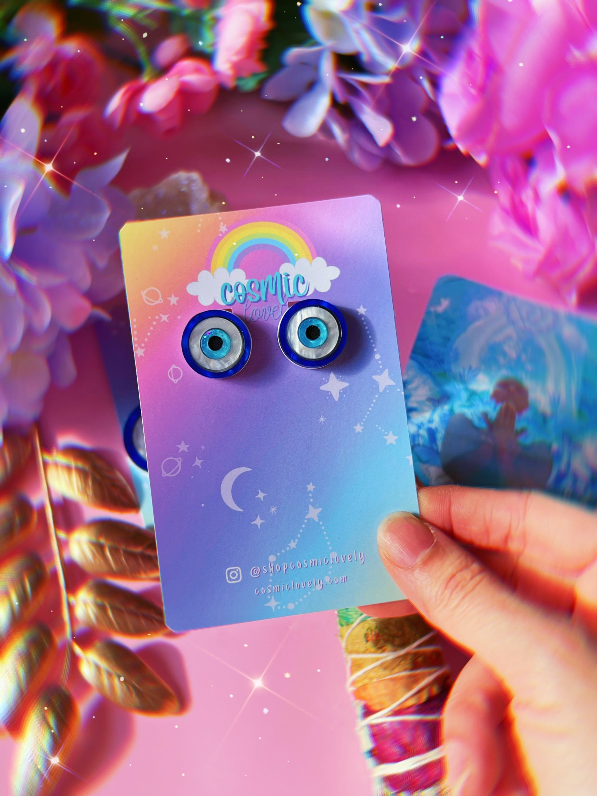 This listing is for ONE Pair of Evil Eye STUDS. posts are hypoallergenic. Earrings are approximately .5"