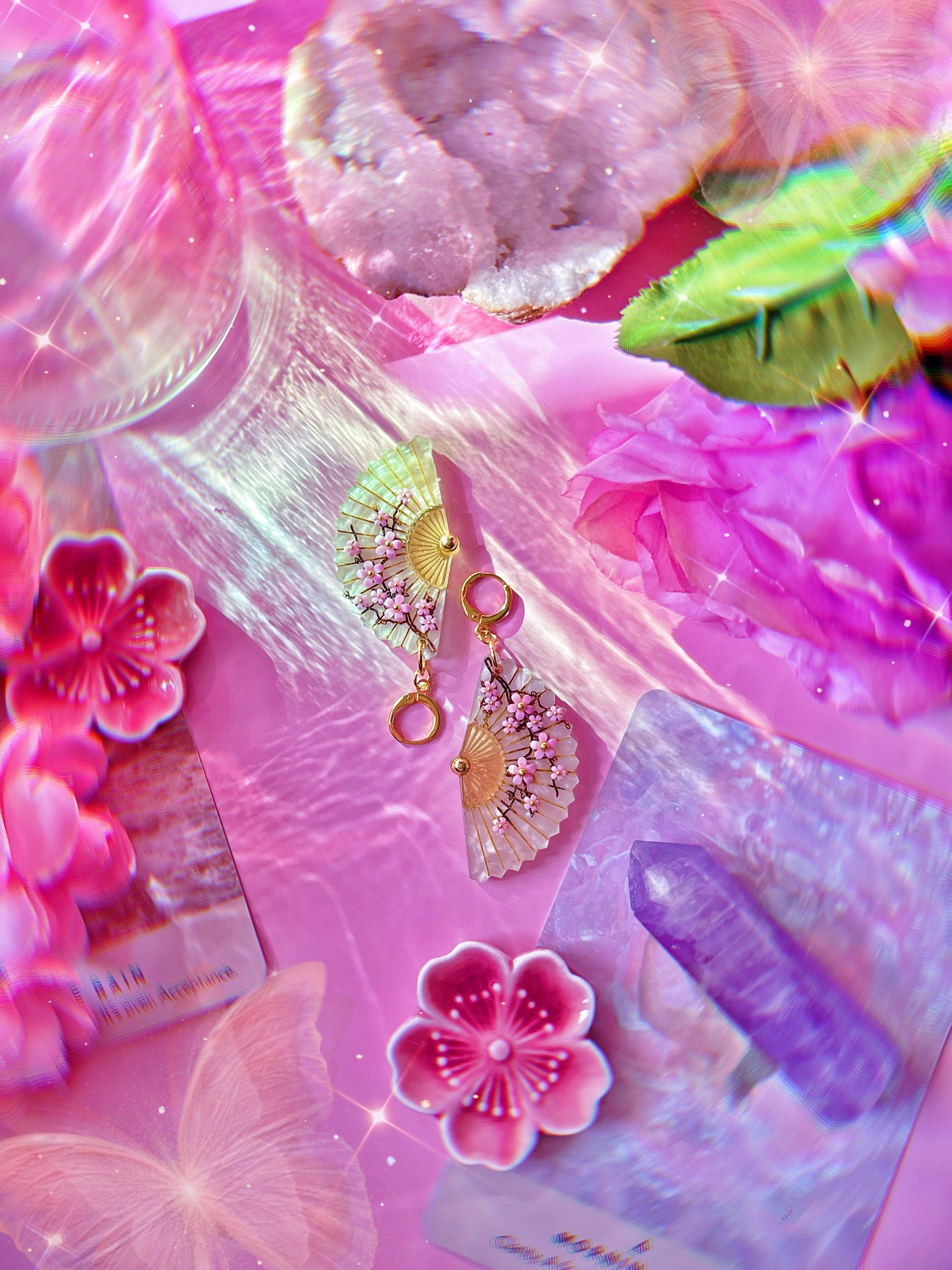 This listing is for ONE Pair of Folding Fan Earrings. Leverbacks are hypoallergenic. Earrings are approximately 3.5" Pin, Magnet, and Hair clip options available.