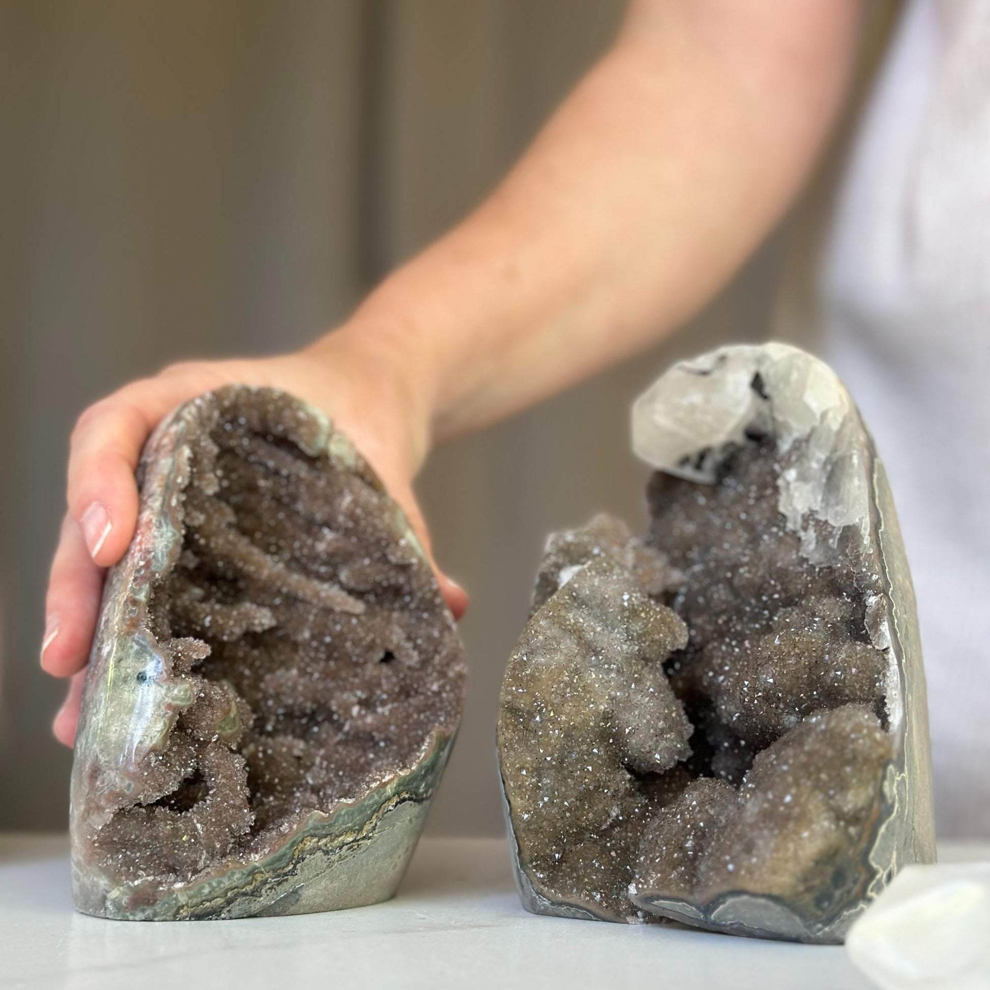 This incredible rare free form microcrystal formation set is a AAA quality stone. It's a unique specimen, ideal for collectors. It has amazing an amazing calcite formation.