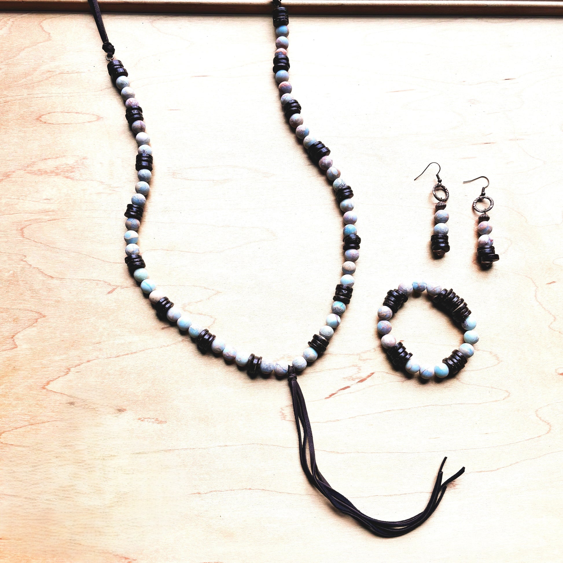 Show off your boho chic style with these handcrafted earrings! These artisan earrings are made by hand with genuine Aqua Terra stones and wooden discs for a unique bohemian look. These handcrafted earrings complete any boho chic outfit, with neutral tones and beautiful pastel accents. Pair them with a boho statement necklace and handmade beaded bracelets, or wear them by themselves to draw attention to your eyes. You’ll only find these artisan earrings online at The Jewelry Junkie!