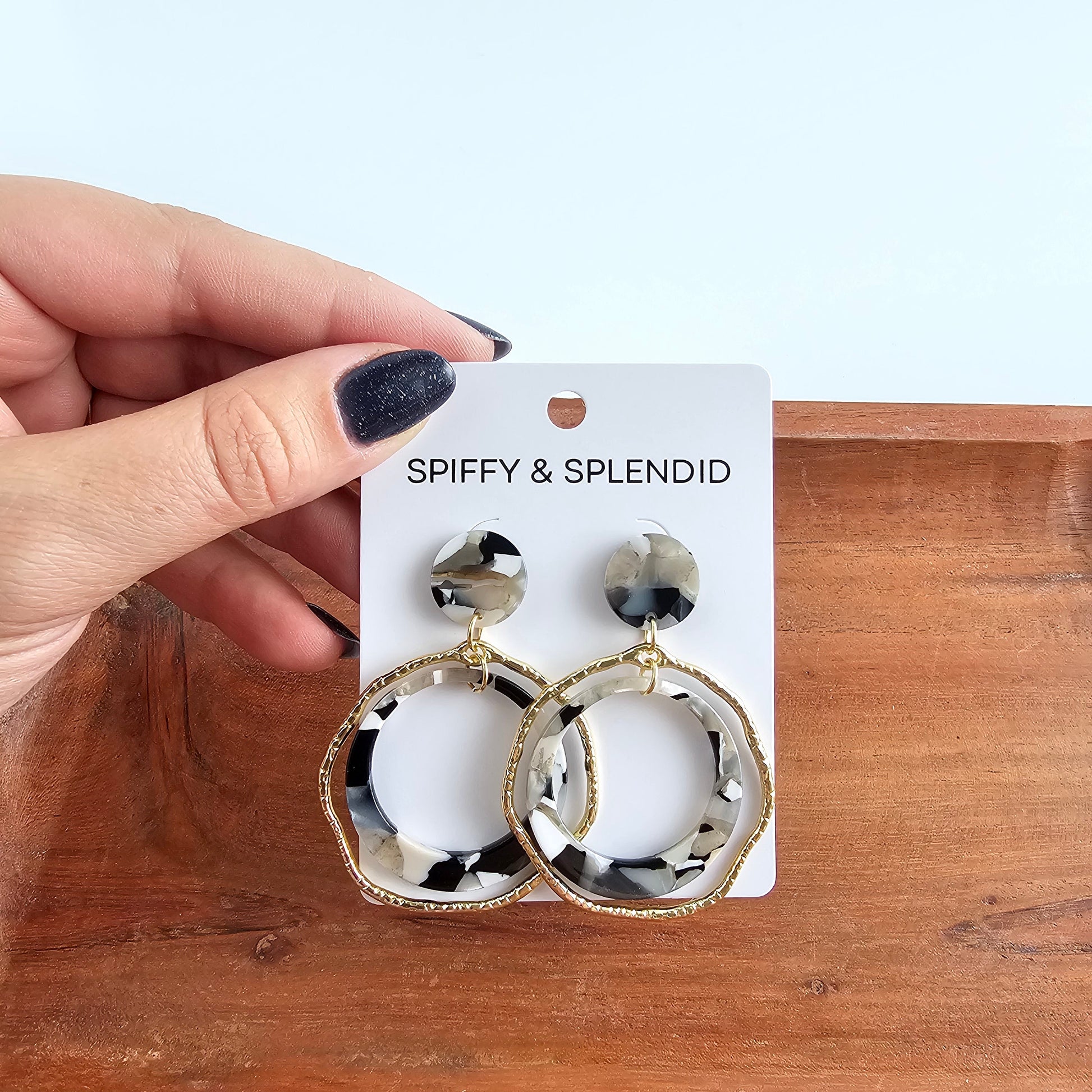 Get ready to make a statement with the Georgia Earrings in Ivory & Slate! This playful dangle style combines metals and acrylics for a unique and eye-catching look. Perfect for adding a pop of personality to any outfit.