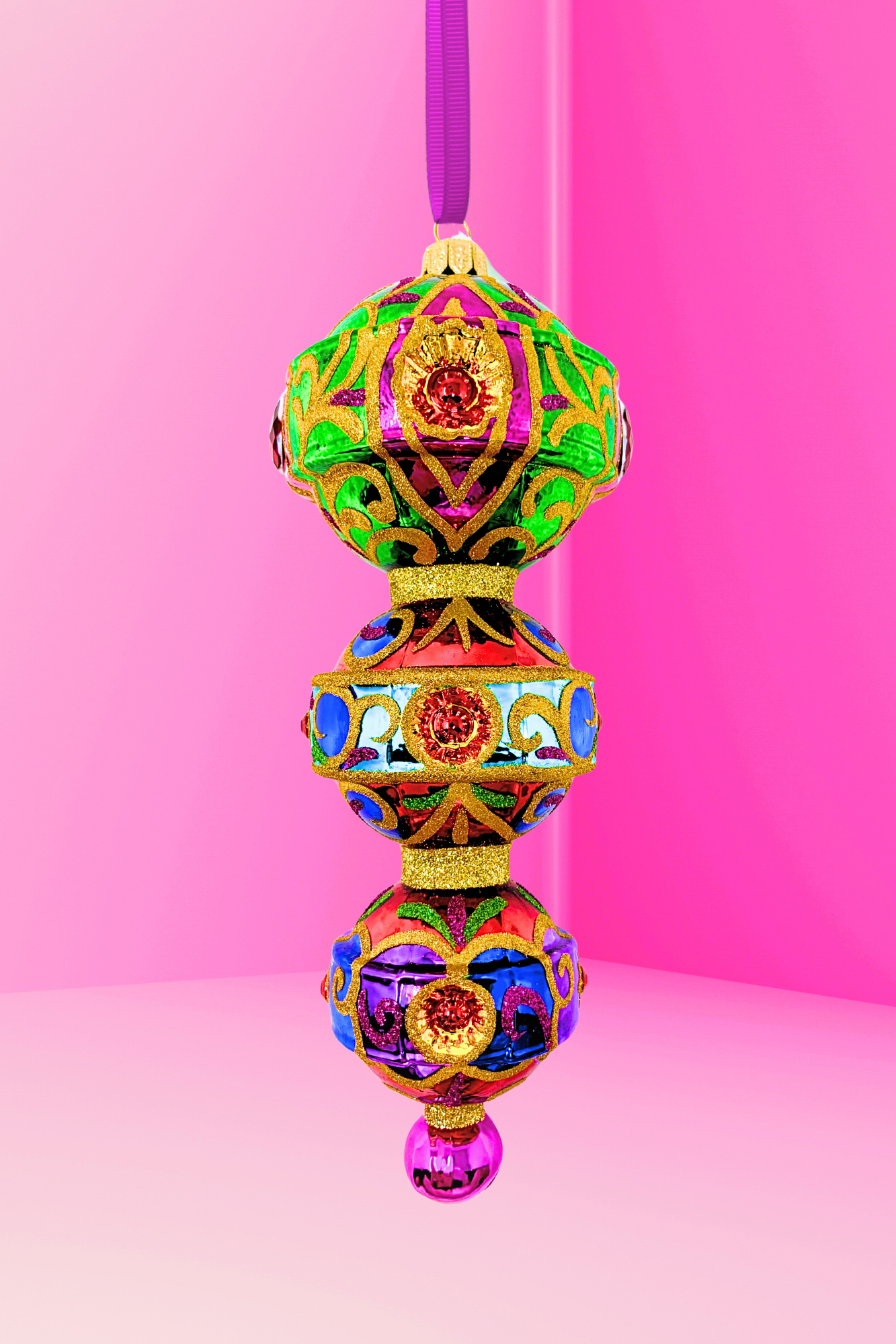 Layers of bold Sicilian hues burst forth in a dazzling display of artistry, where swirling filigree and rich gemstone embellishments dance across a sculpted form. Inspired by Italy’s most opulent festivals, this ornament is a tribute to maximalism at its finest—where more is more, and every detail tells a story of luxury.