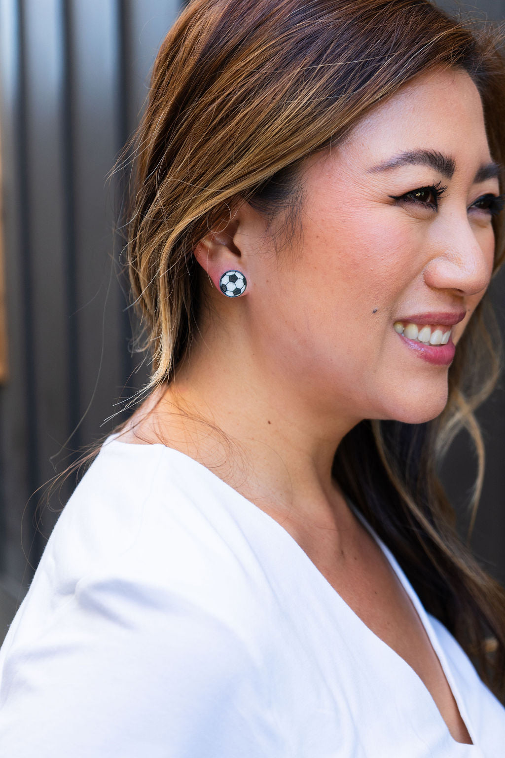 Score style points with these Glitter Soccer Ball Studs. Featuring a fun and sparkly design, these studs add a playful touch to your game day look. Perfect for soccer fans and jewelry lovers alike! You'll be the MVP when you kick up your style with these studs!