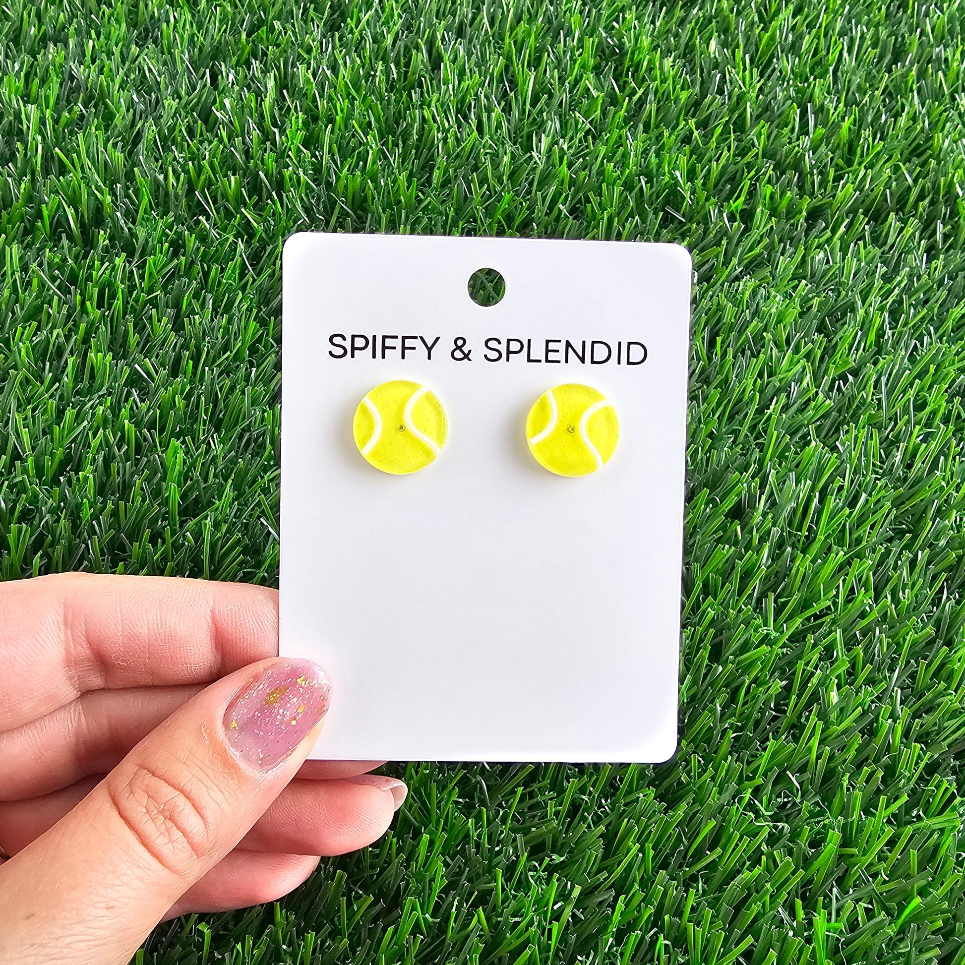 Bring some playful shine to your wardrobe with these Glitter Tennis Ball Studs. Perfect to ace your sporty look, these studs are bound to turn heads with their sparkling touch. Game on, style!